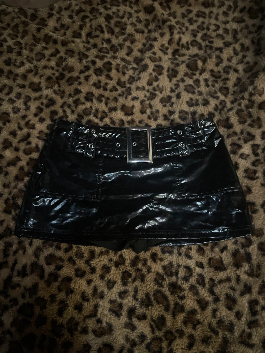 Show allBlack leather mini skirt