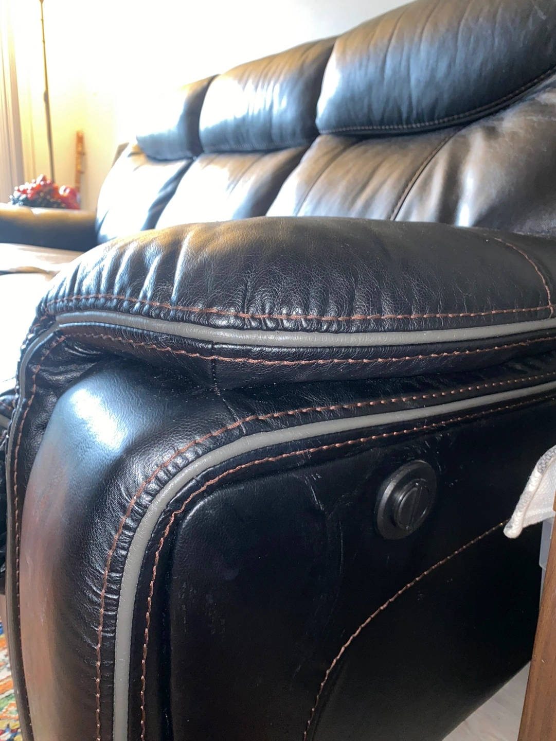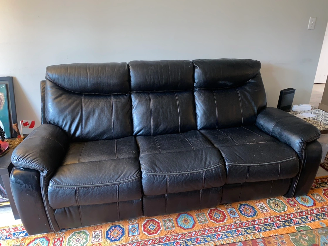Two Dark Brown Leather Dining Chairs ($10 each)
