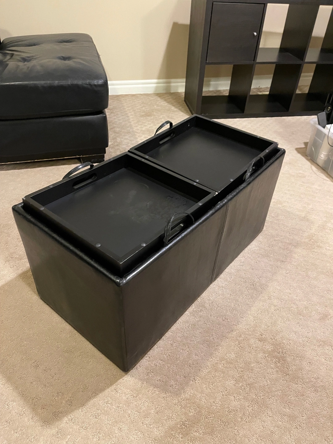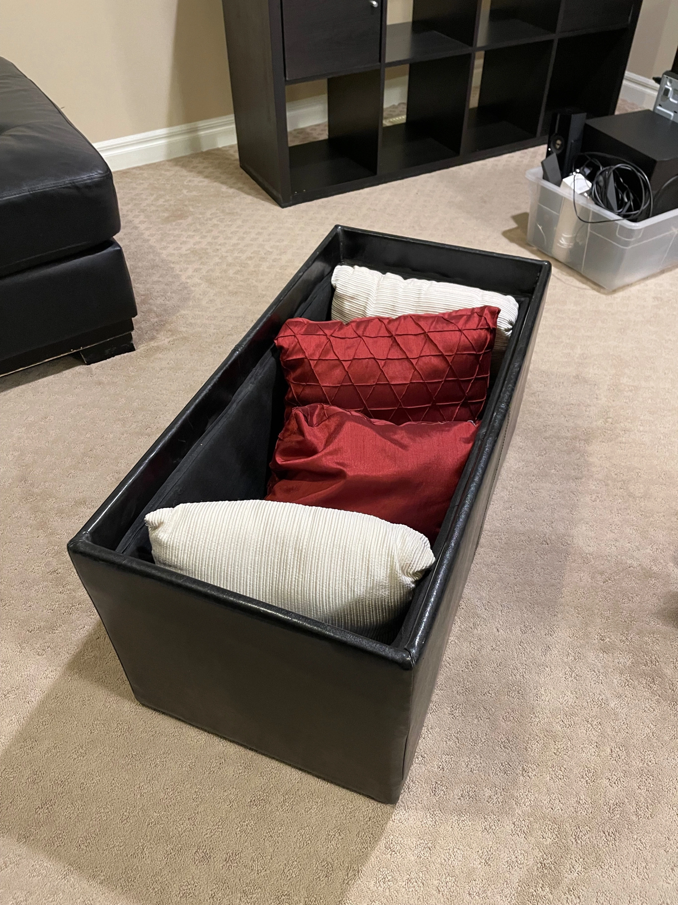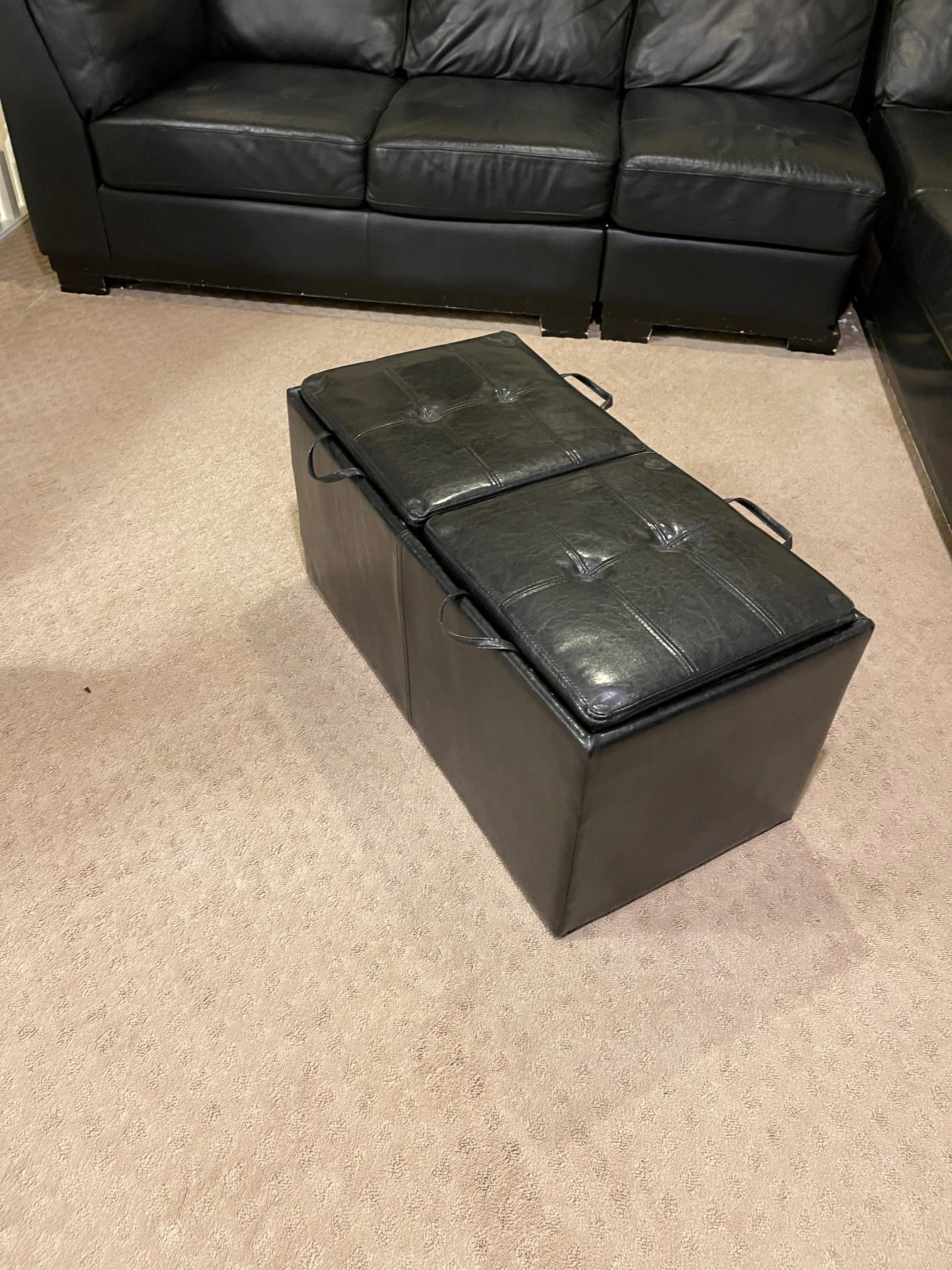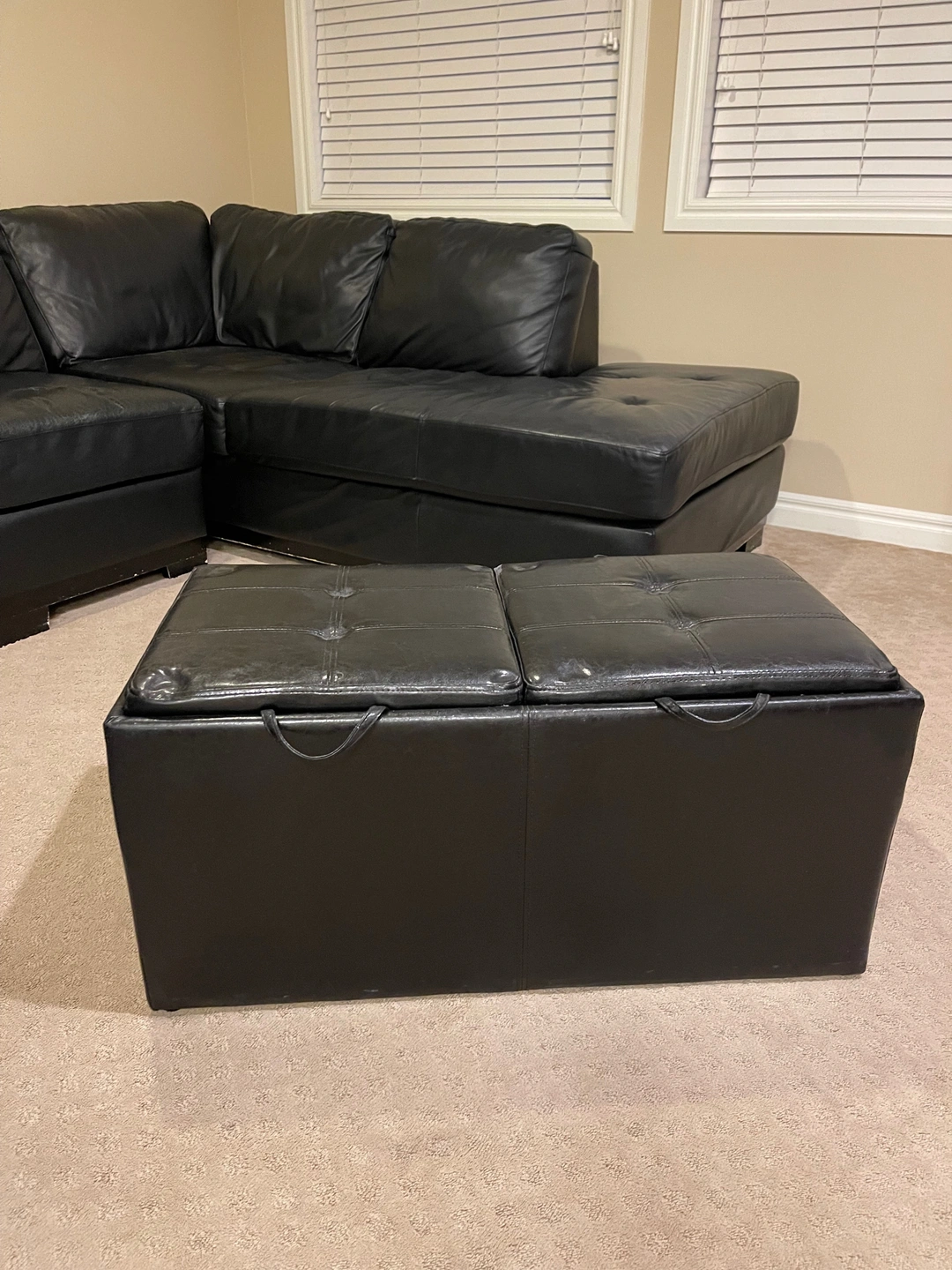 Genuine Leather. Moving Sale. Well kept and good condition. Dimensions: 35” Width x 17.5” Depth x 17” Height Comes with 4 FREE couch accent pillows. Gently used, good condition. 2 red and 2 white. Cash only. Pick up only, no delivery. OBO but no low ball offers. Cash only. If this ad is up, this item is still available.