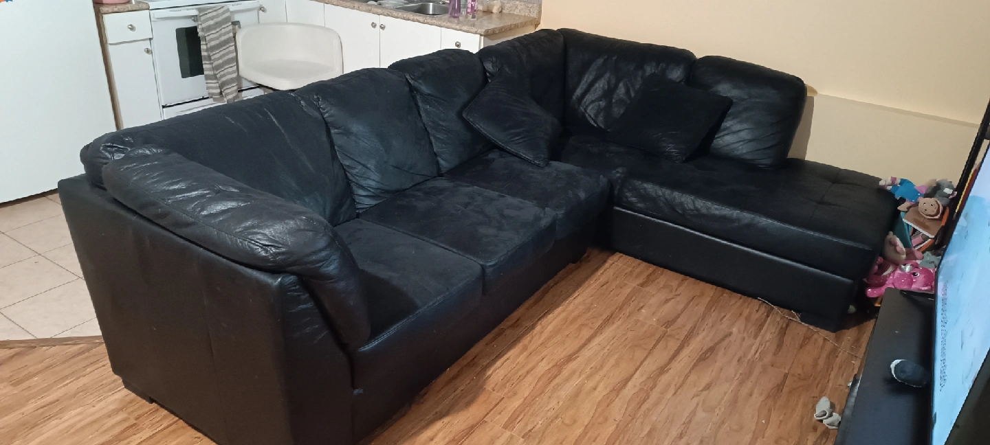 0Title: ๐ค Comfortable Black L-Shaped Sectional Sofa โ Modern & Spacious ๐ค Description: Upgrade your living room with this stylish black L-shaped sectional sofa, perfect for relaxing, entertaining, or family movie nights. Its modern design fits beautifully in any space, offering both comfort and practicality. โจ Details: Color: Black Material: Faux leather (easy to clean and maintain) Configuration: Right-hand chaise sectional Condition: Good โ comfortable cushions, minor wear consistent with normal use Seats 4โ5 people comfortably ๐๏ธ This sectional combines a sleek look with cozy comfort, making it ideal for apartments, basements, or family rooms. Easy to move and fits well in medium-sized spaces. ๐Pickup in [Gateway SkyTrain station area] ๐ฐ Asking: 400 CAD
