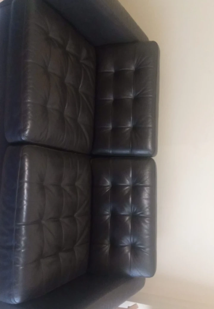10Selling a comfy black leather sofa. It's in great shape and would look great in any living room or den. The cushions are soft and supportive, perfect for relaxing after a long day. If you're interested, send me a message!
