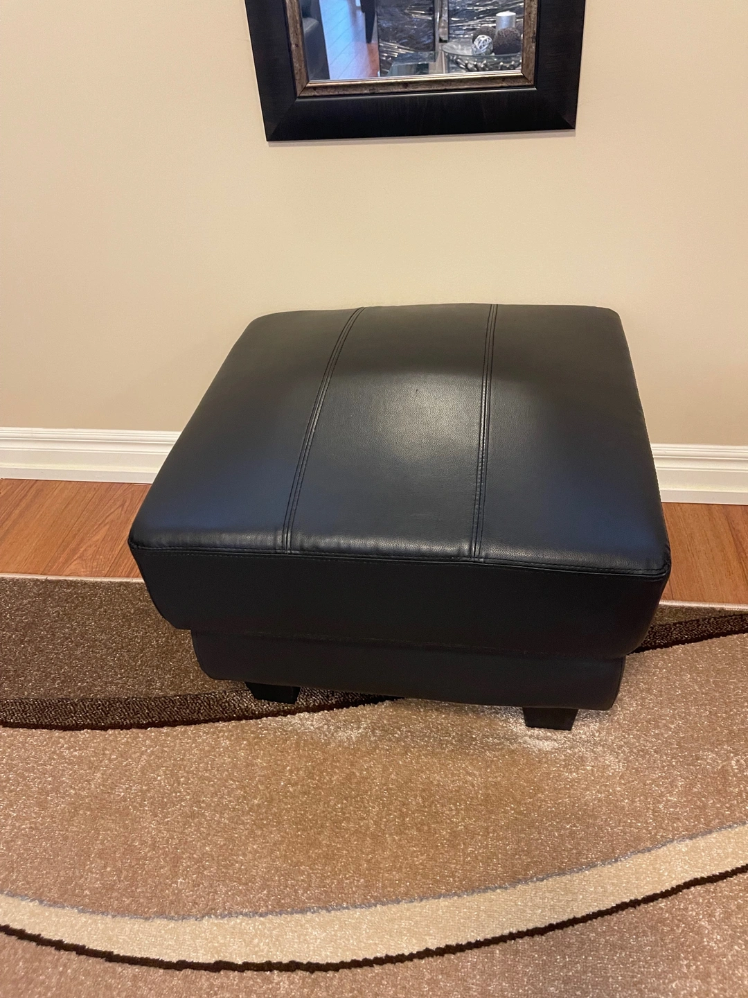10Bonded Leather. Moving Sale. Well kept and good condition. Dimensions: 24” Width x 24” Depth x 15” Height Cash only. Pick up only, no delivery. OBO but no low ball offers. Cash only. If this ad is up, this item is still available.