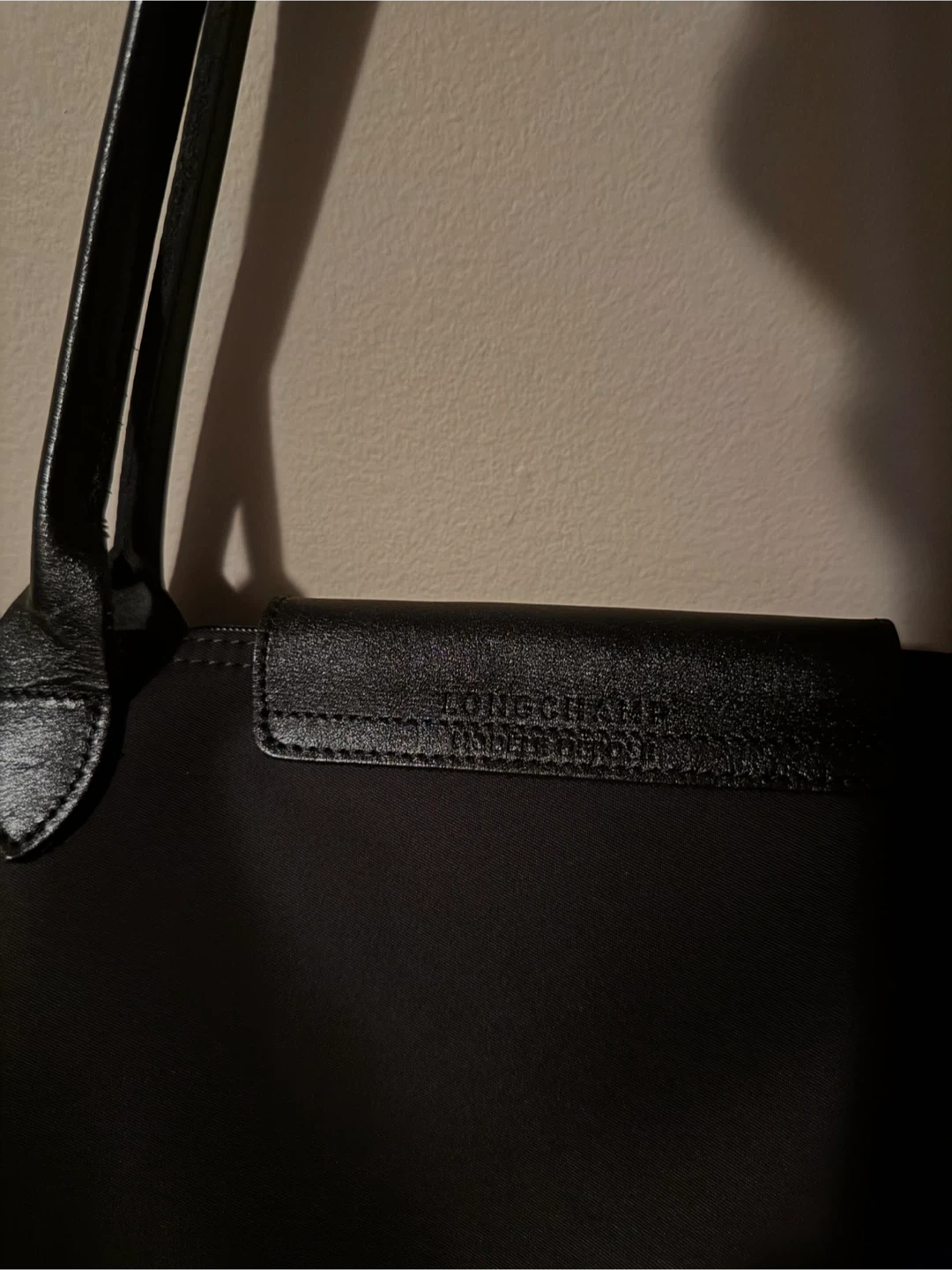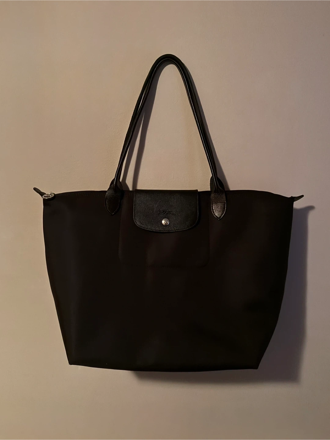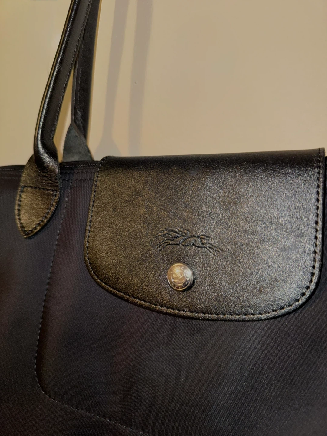 Gently used Black Longchamp Le Pliage bag Size L. Classic, durable, and stylish nylon tote with foldable design. Perfect for everyday use or travel. In good condition. Message for more details! - Perfect for Moms or Girls who carry around a lot of essentials! - Authentic Longchamp. This is the OG line of the black Neo Le Pliage Tote which has been discontinued. It has thicker nylon compared to the recycled nylon of the newer bags and has solid colorway. This bag will be in excellent condition for many years. - CASH ONLY