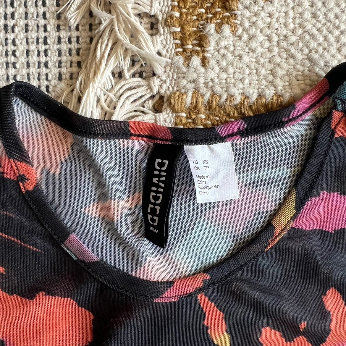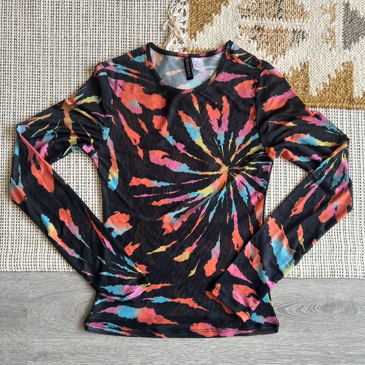 A sheer, long-sleeved top with a black background and a colorful tie-dye pattern CONDITION: NEW ( NEVER WORN) SIZE : XS 😊CLOSET CLEAROUT😊 ** if listing is still up the item is available ALL SALES FINAL SERIOUS INQUIRES ONLY PLEASE :) PICKUP ONLY - PRIORITY TO QUICK PICKUP AND/OR BUNDLES LOCATION: DOWNTOWN ( RICHMOND/ GEORGE ST) Check my listings for more :)