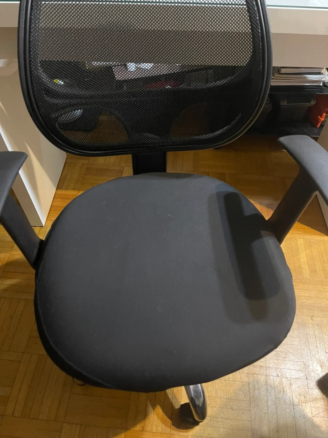 138Selling a black mesh office chair! It's in great condition and ready for a new home office setup. The mesh back provides good support and breathability, making it comfy for long hours. The chair also features a swivel base and adjustable height. Pick up at Islington /401, bergamot avenue Etobicoke. I accept only cash . If you see the add up it’s available 🔹PLEASE CHECK OUT OUR OTHER LISTINGS TOO🔷