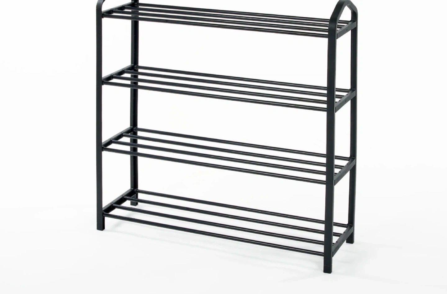 Looking to declutter your entryway? I'm selling a sturdy black metal shoe rack with four tiers. It's perfect for keeping your shoes organized and off the floor. It's in great condition and ready for a new home!