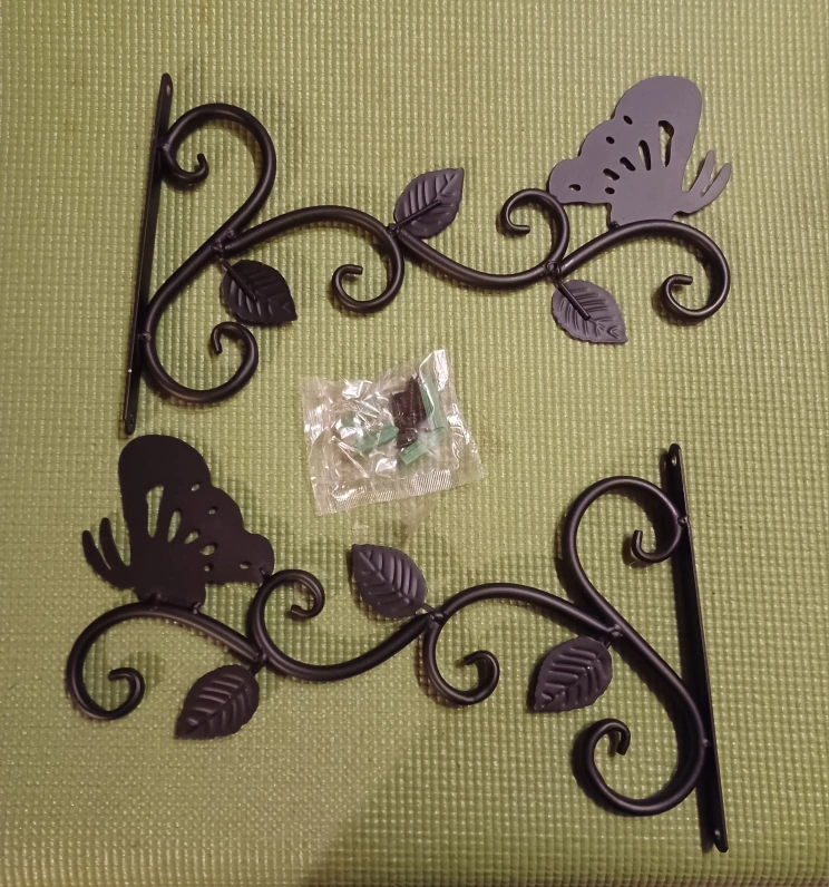 35Set of two metal plant hangers with butterflies. Includes mounting hardware. 7.5in x 11.5in