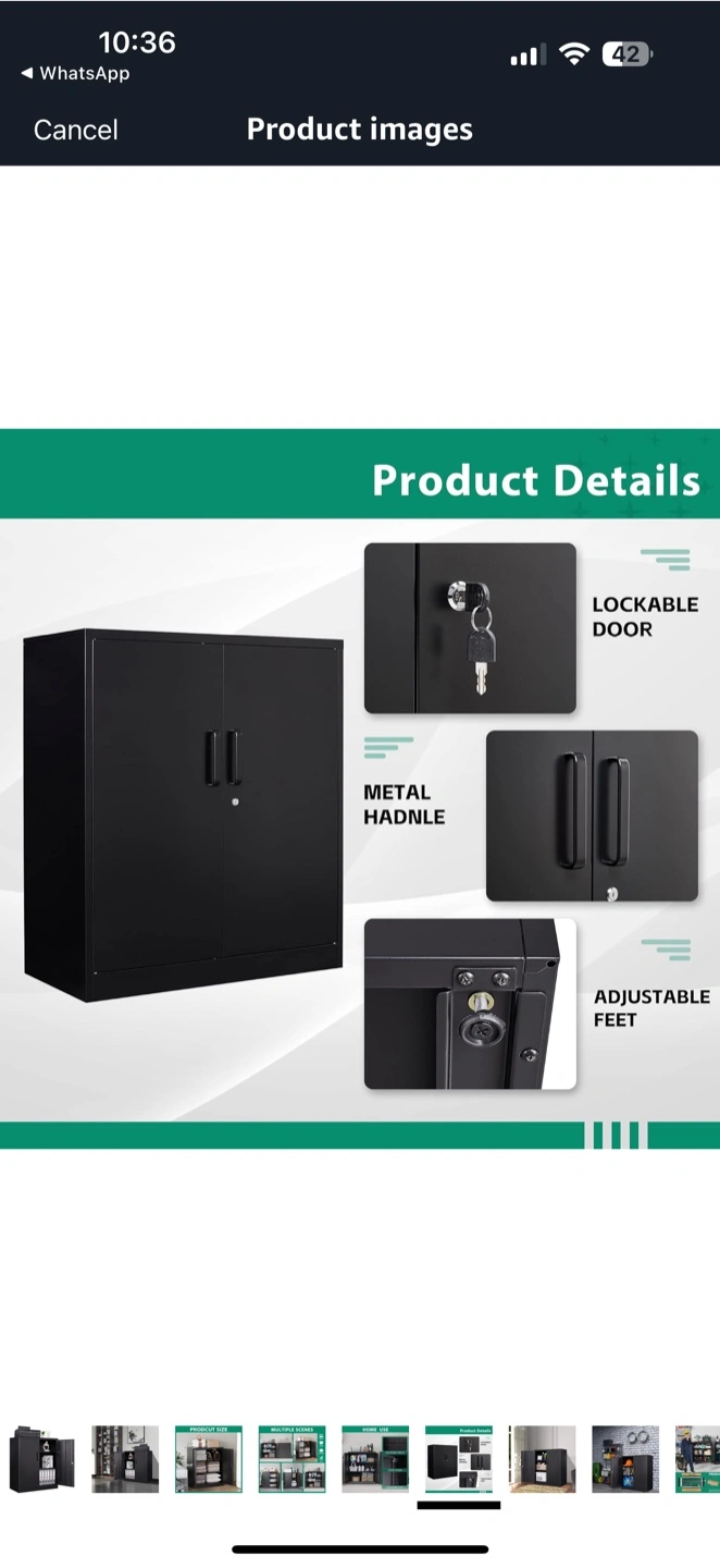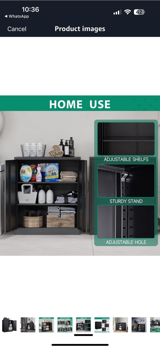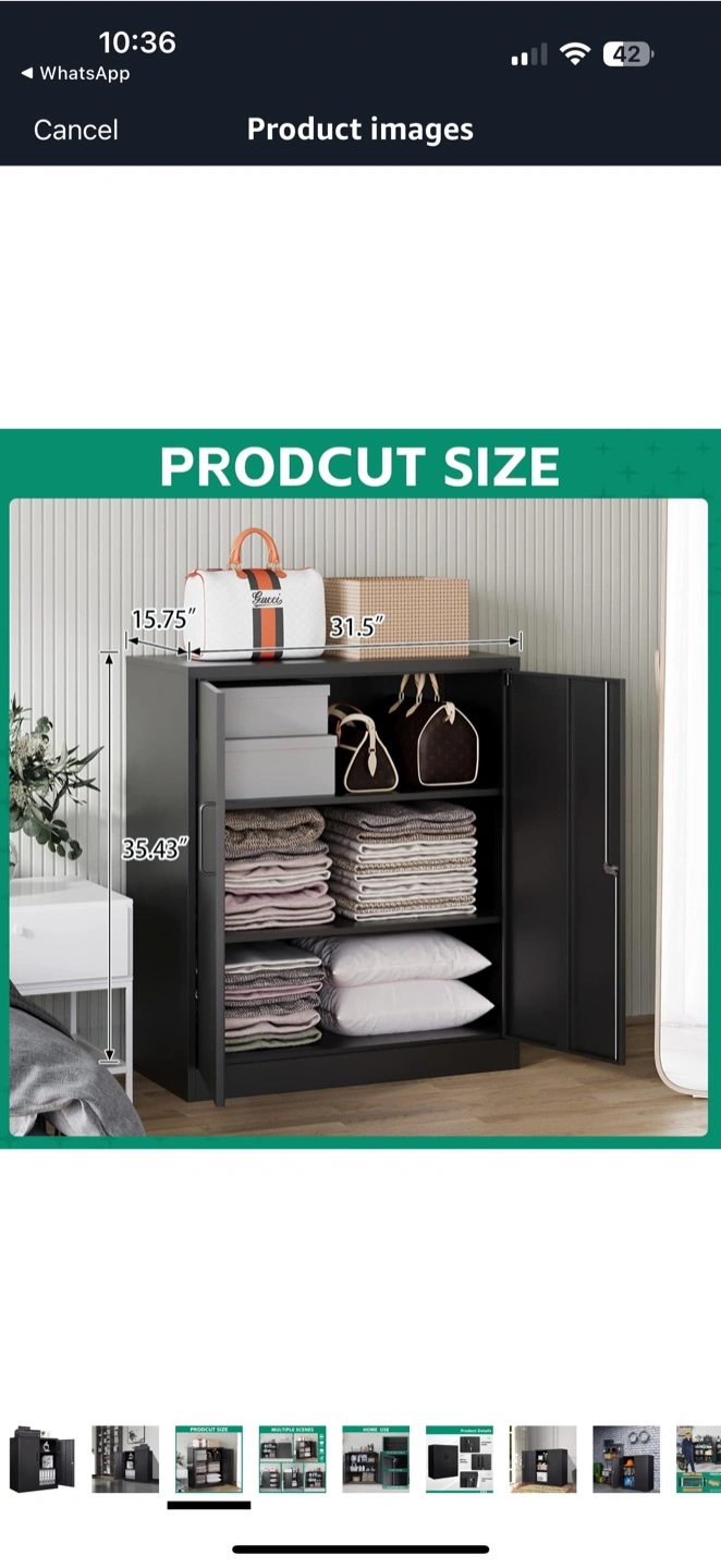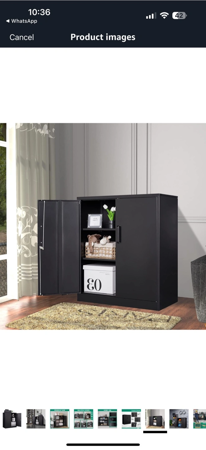 Slightly Used Storage Cabinet for Sale Original price $179 asking $100 Brand Letaya Colour Black Material Metal Recommended uses for product Files & Folders Product Dimensions 90D x 80W x 40H Centimetres Special feature Lockable 【Full Steel Rustproof Design】 Storage cabinet is made up of 0.8mm full steel ,rugged and not easily deformed, plate adopted environmentally powder coated finish, Moisture proof ,capacity to resist corrosion and rust,Can be used for a long time 【Big Capacity】Steel storage cabinets H36 * W32 * D16 inch , features 2 adjustable shelves, the shelves cabinet can hold up to 180lbs, guaranteeing maximum adaptability and convenience for your unique storage and organizing needs 【Privacy Security】The storage cabinet is lockable, provide metal lock and 2 keys for your valuables and important items 【Practicality】Storage cabinet dimensions ,Can fit perfectly used in office, home, school, archives, garages, basements utility room ,hospital,kitchen,or anywhere secure storage space is required 【Easy to assemble 】Storage Cabinet assembly instructions make it easier for you to assemble