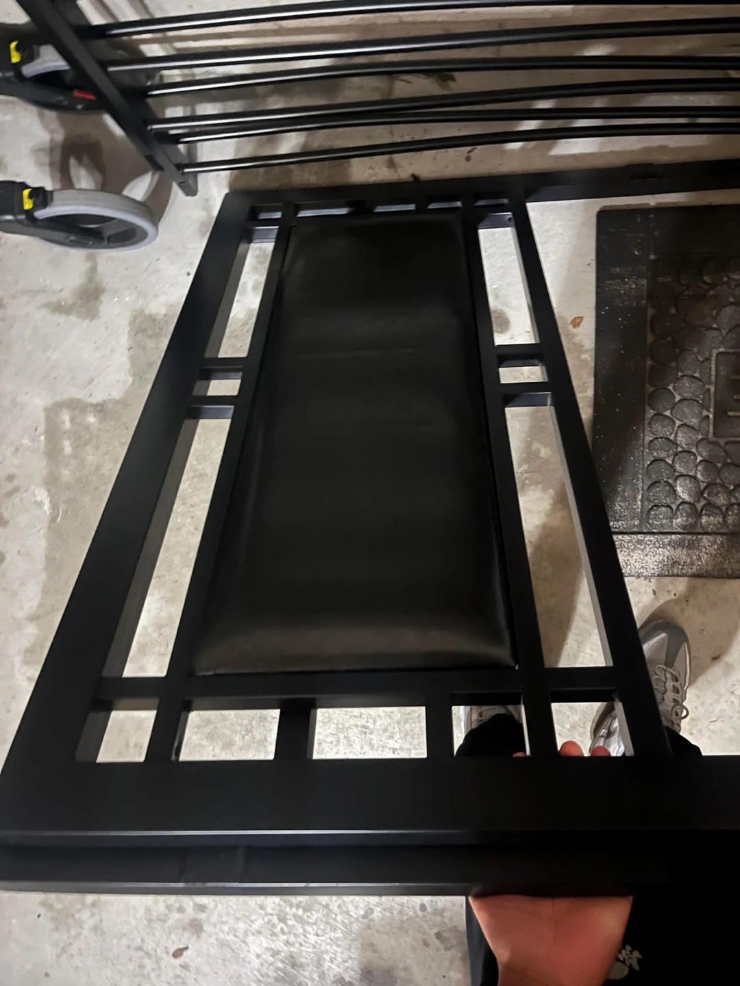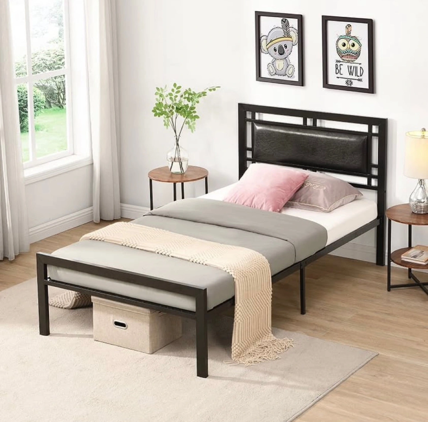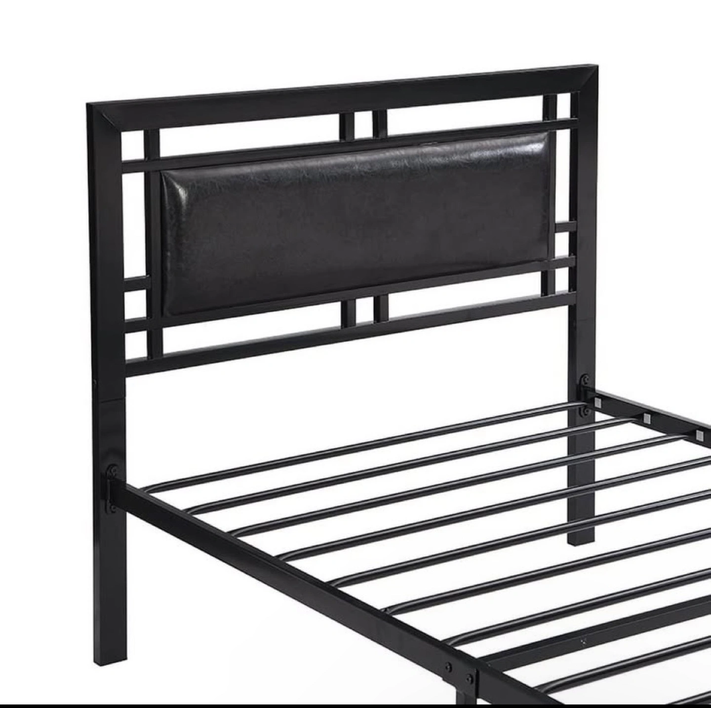 258Sleek black metal twin-size bed frame. Features a padded headboard. Sturdy construction. Easy assembly. Already disassembled. Pick up from Scarborough/Ajax/York University (Keele st). Delivery available for extra $15, area dependant.