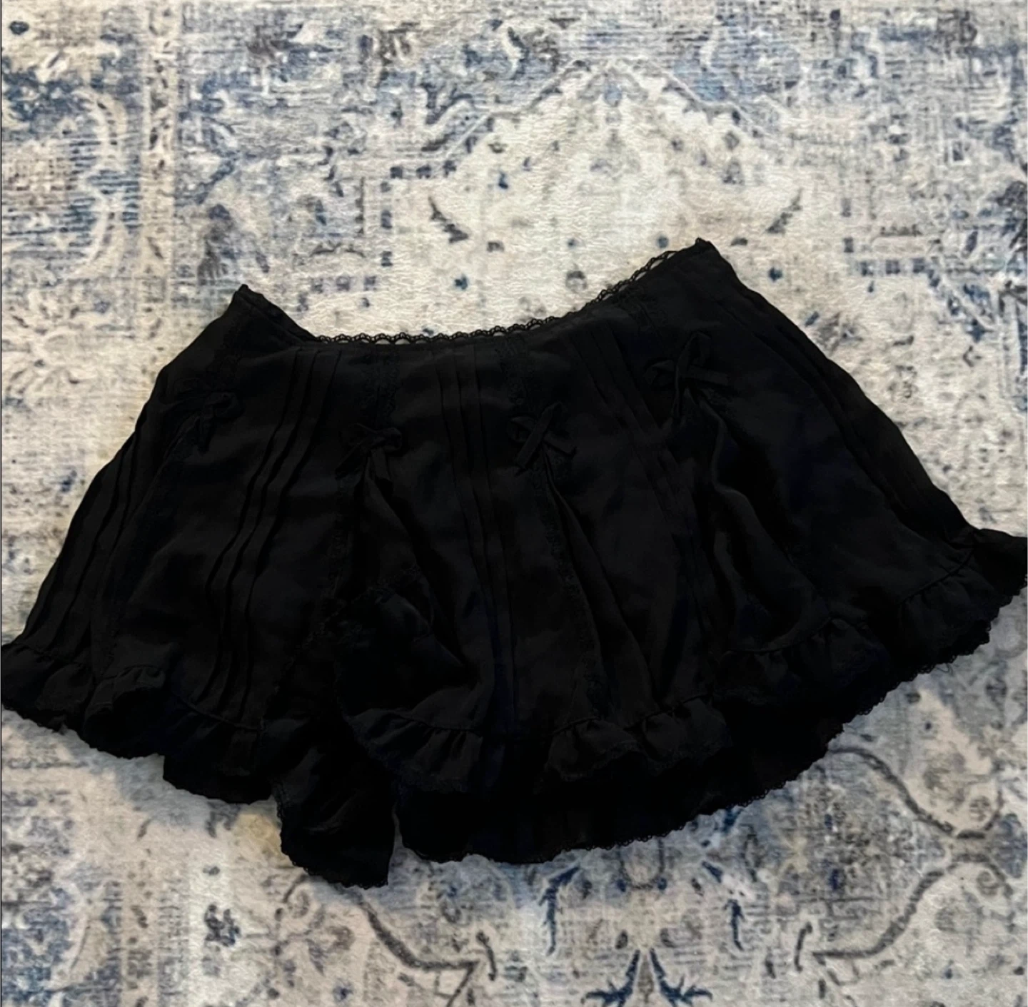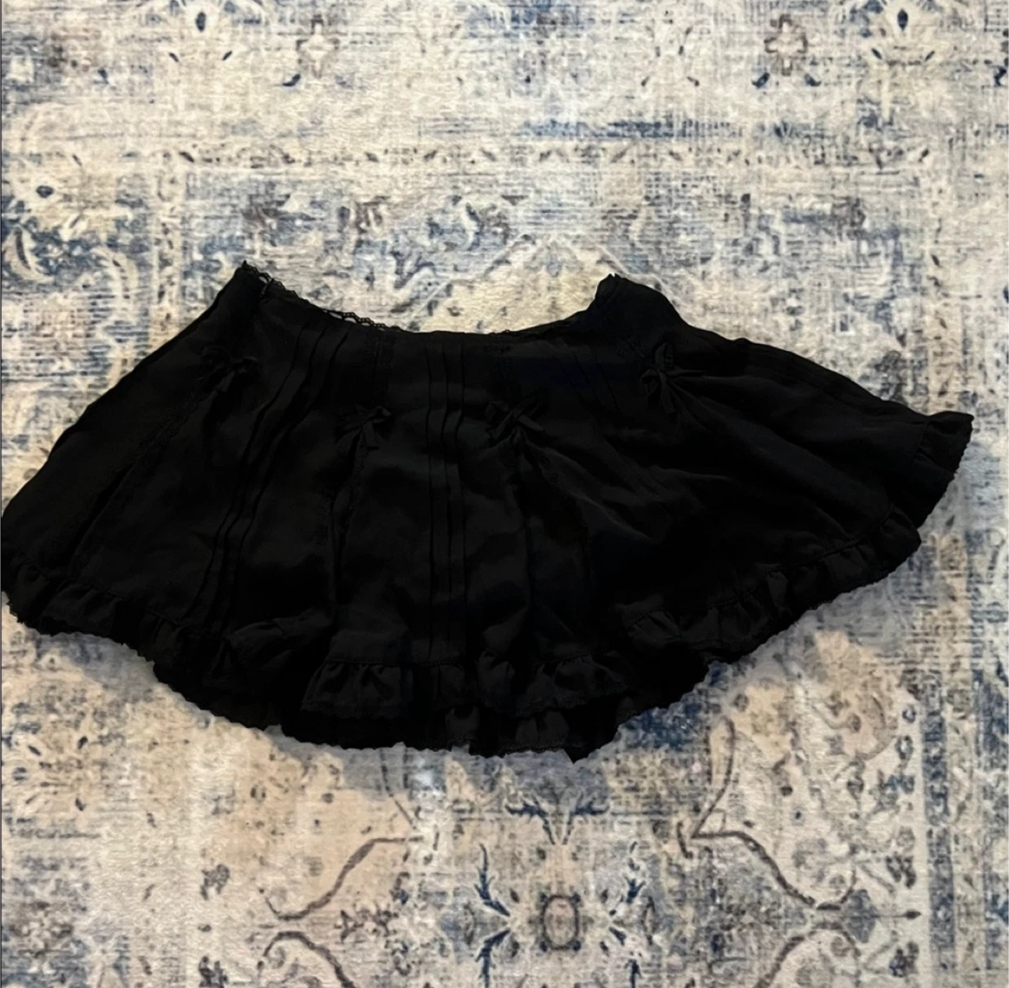Selling a cute black mini skirt! It's in great condition and features a ruffled hem and lace trim. Perfect for adding a touch of fun to any outfit!