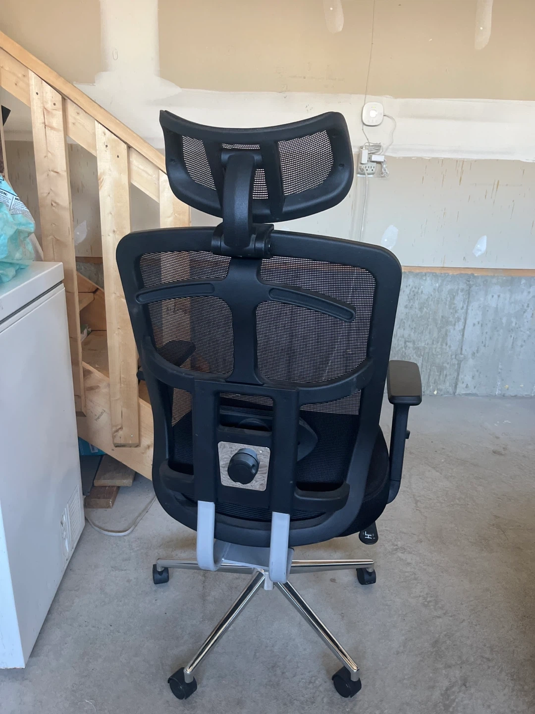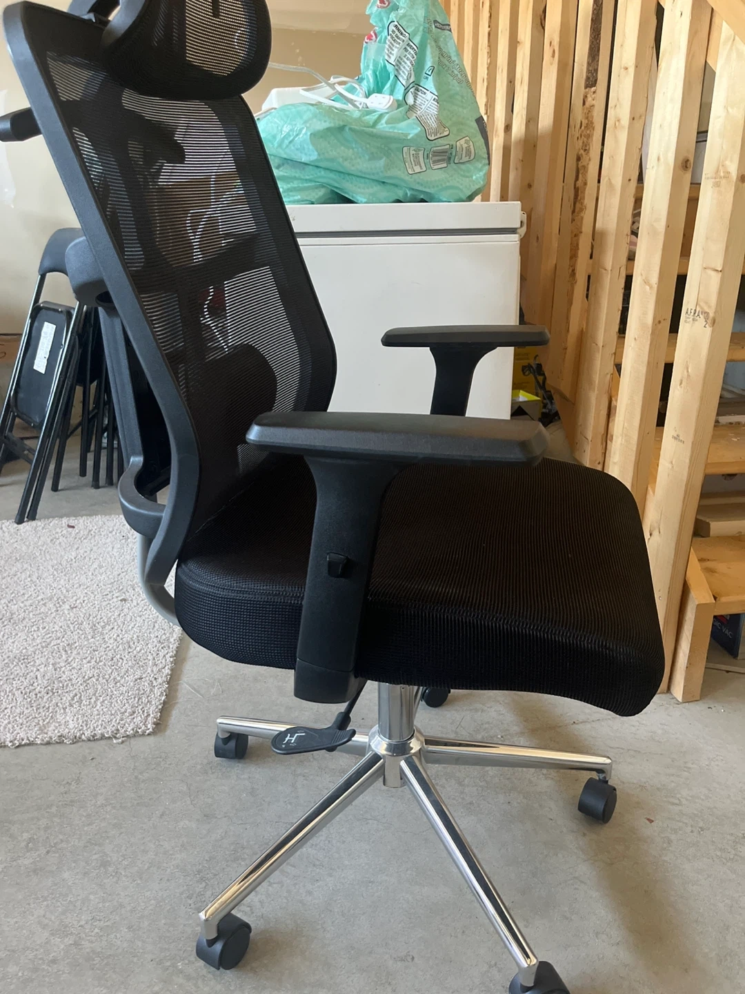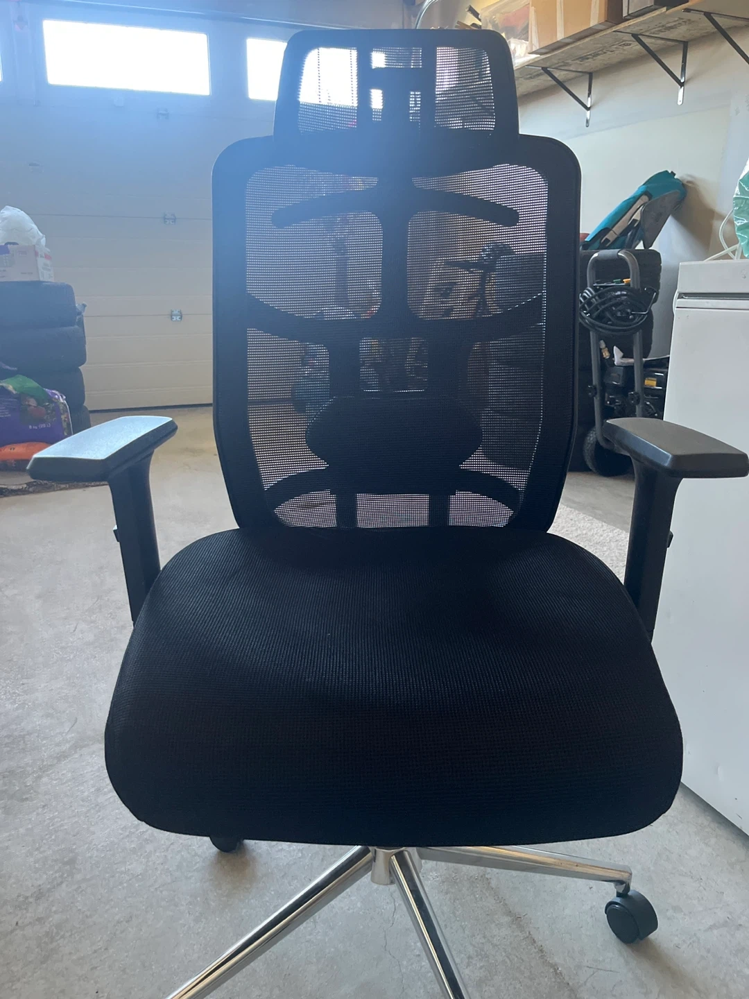 15Selling a comfortable black ergonomic office chair. It features a mesh back for breathability and adjustable armrests for customized support. The chair also has a headrest and lumbar support to promote good posture during long work sessions. The base is a sturdy chrome finish with smooth-rolling casters for easy movement around your workspace