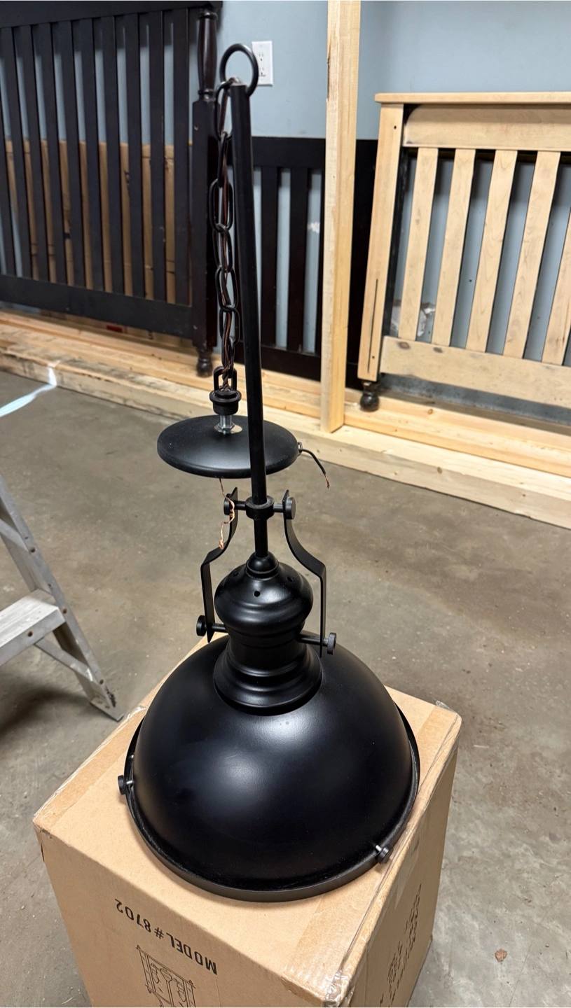 Selling a black pendant light. It's in excellent condition. Perfect for adding a touch of industrial style to your home!