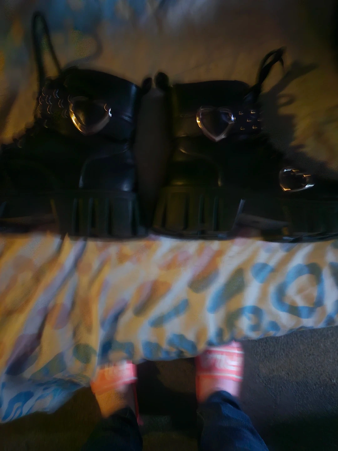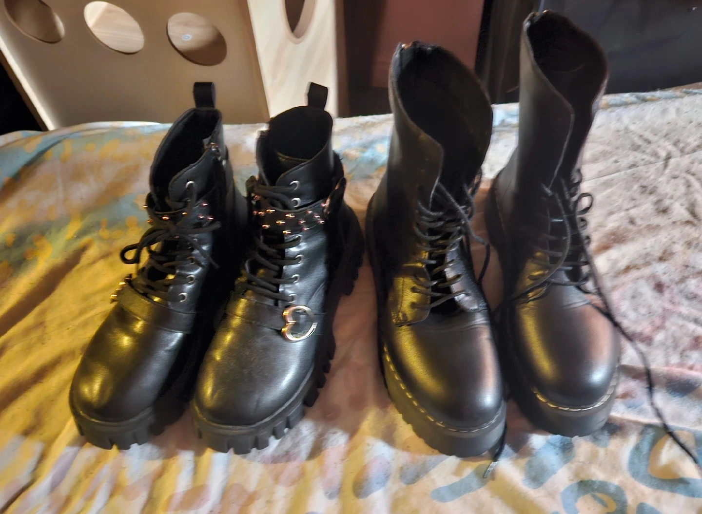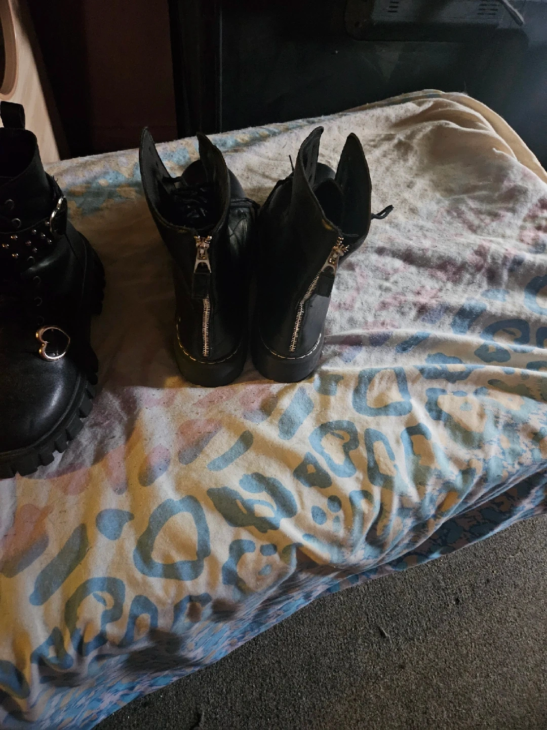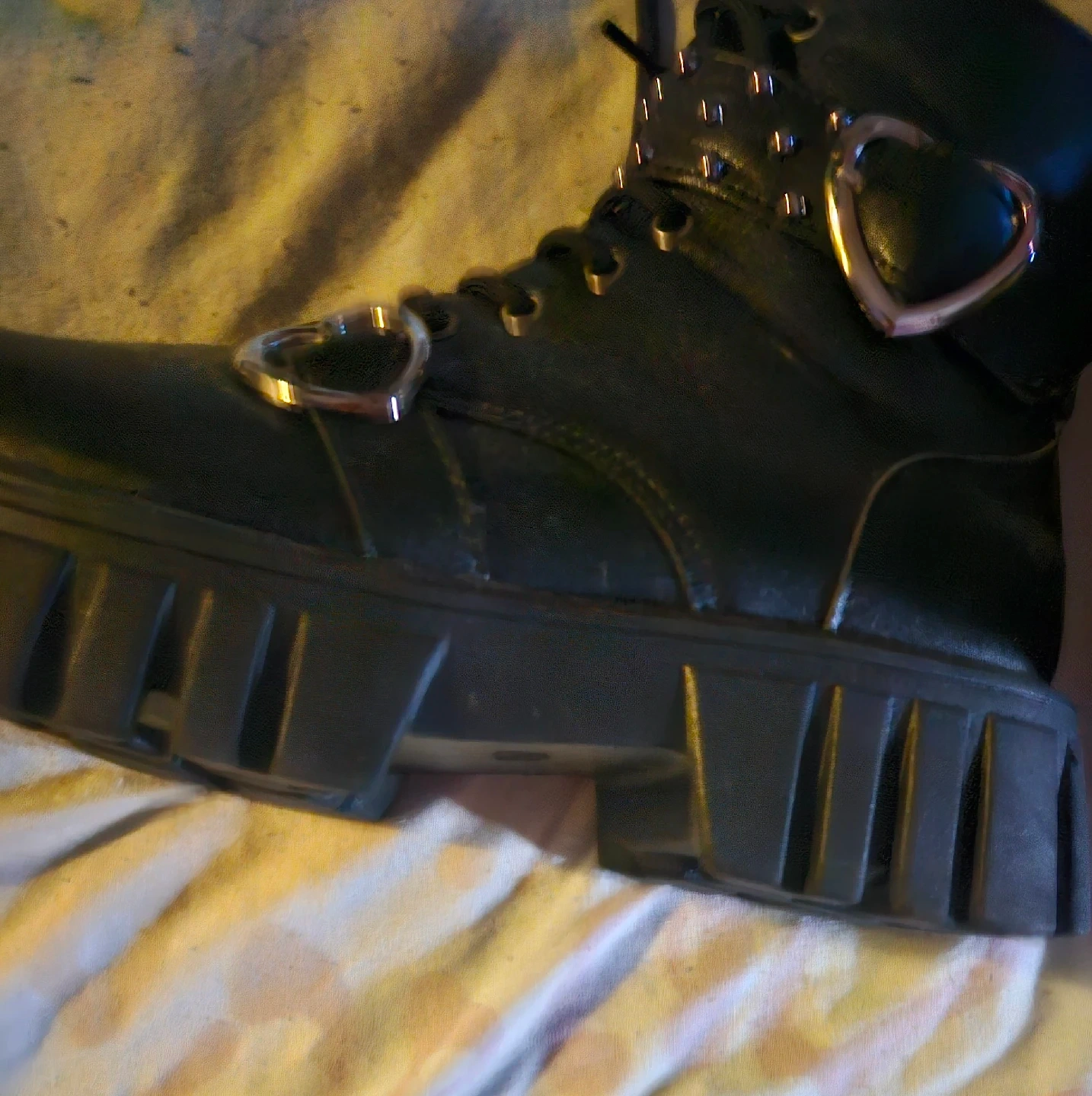 31Selling 2 pair of black platform boots with a cute heart detail! They're in great condition and perfect for adding a bit of edge to any outfit 40$ for both or best offer