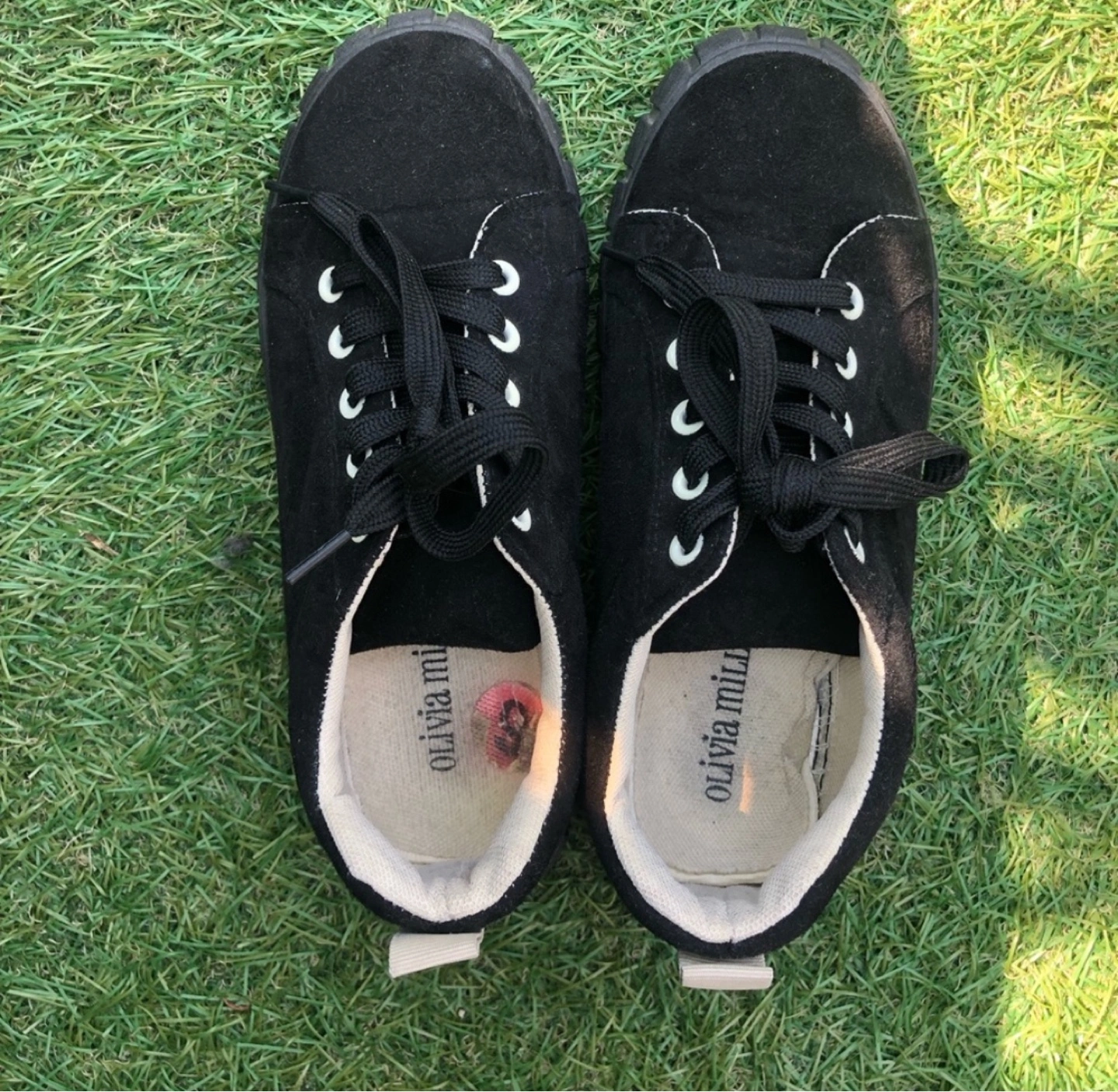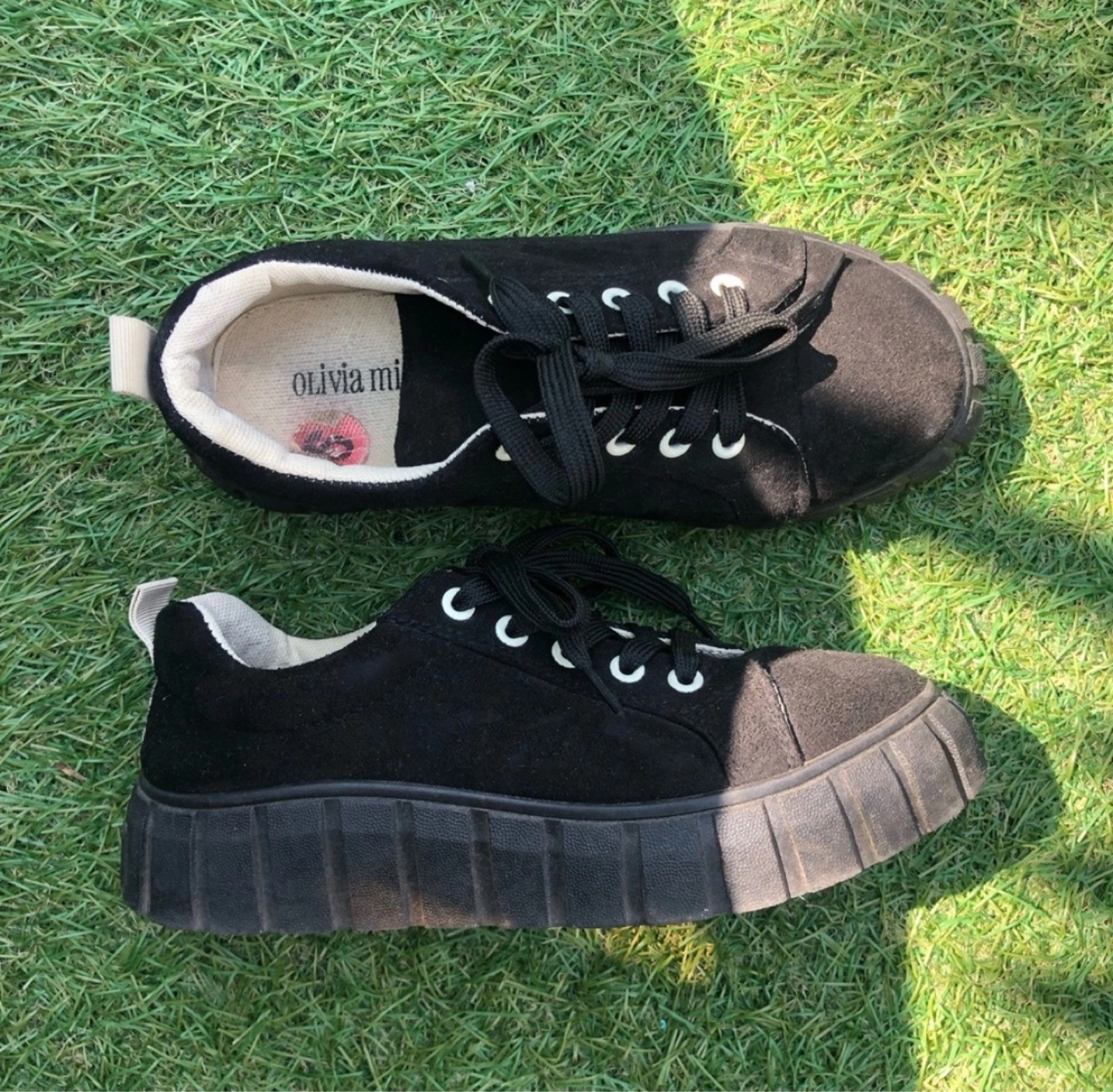Black suede platform sneakers. Lace-up closure. Chunky platform sole. Size 6. Were only worn a few times.