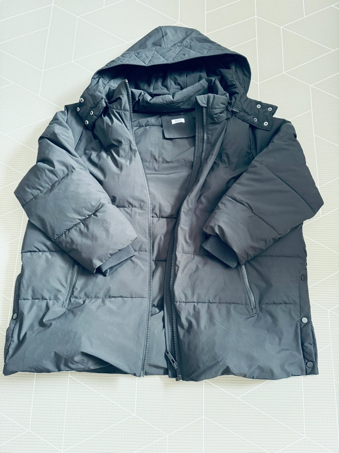 138Women's black puffer jacket. LIKE NEW. Size 3X. Features a hood and side snap closures. Long sleeves. Zipper closure. Excellent condition.