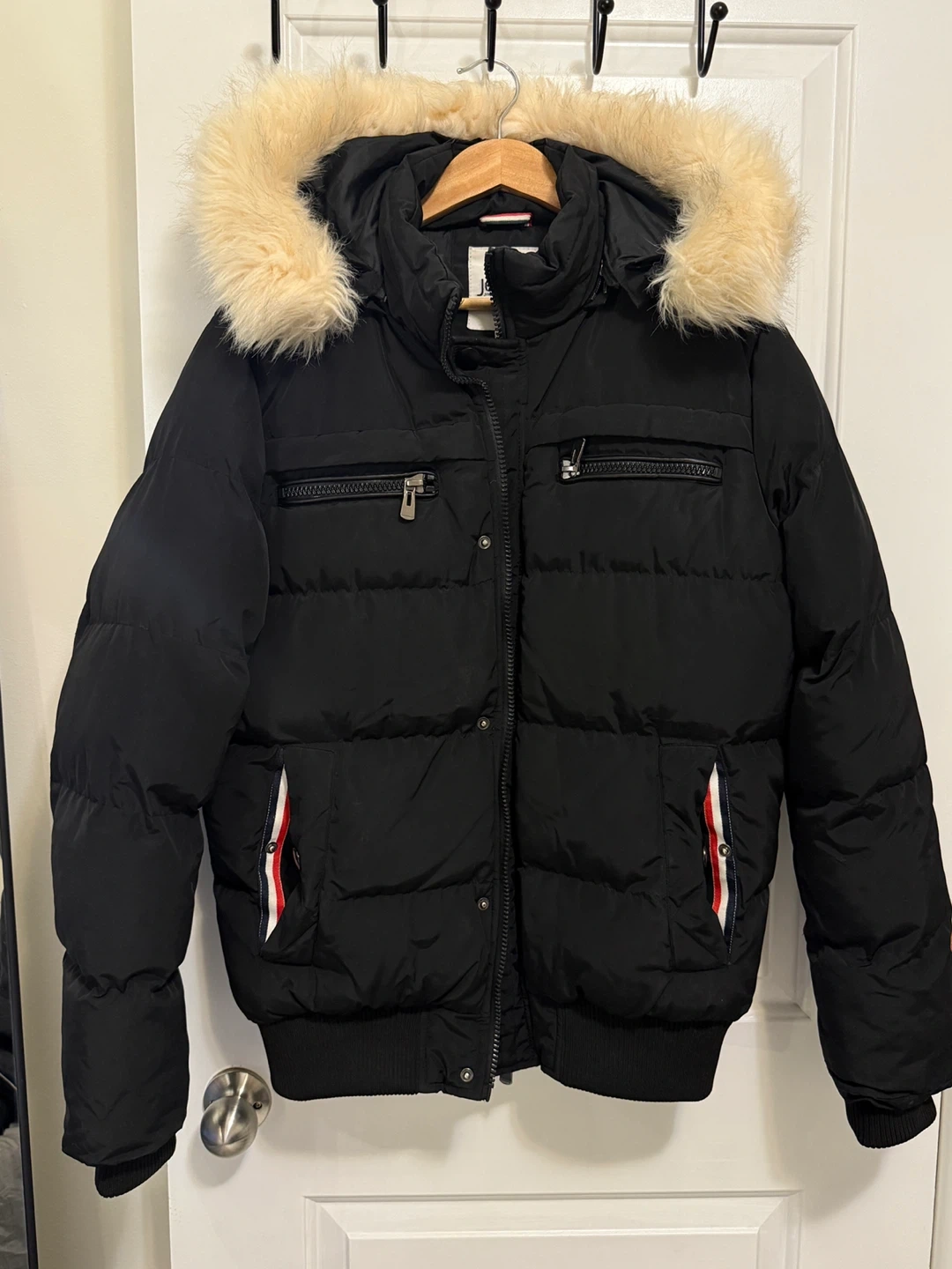 60Selling a black puffer jacket! It's in great condition and has a faux fur hood. Perfect for the cold weather!