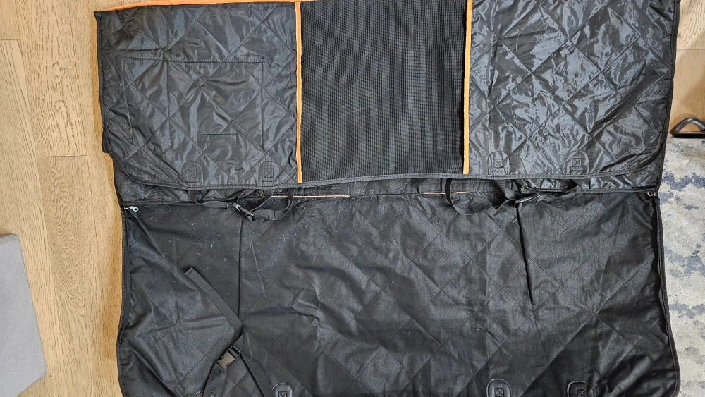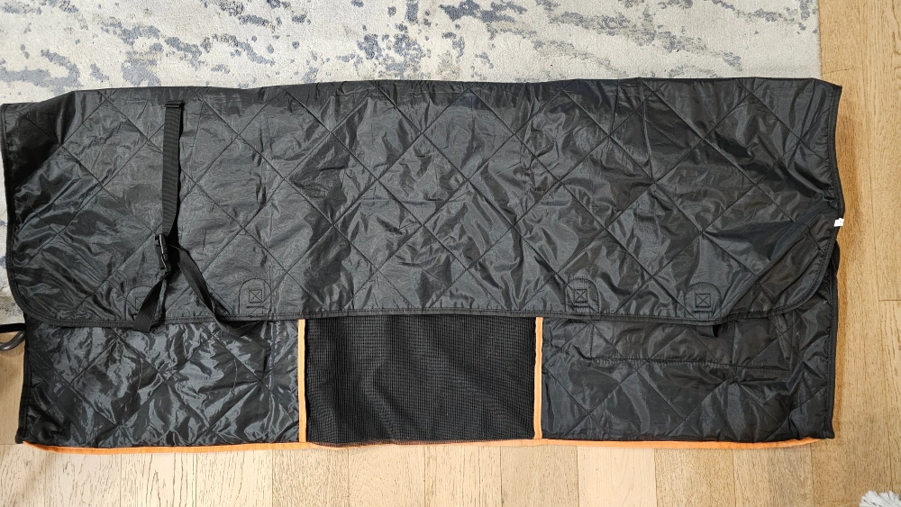 62Durable black quilted pet car seat cover. Features multiple pockets and straps. Water resistant material. Protects your vehicle's interior from pet hair and messes. Easy to clean.