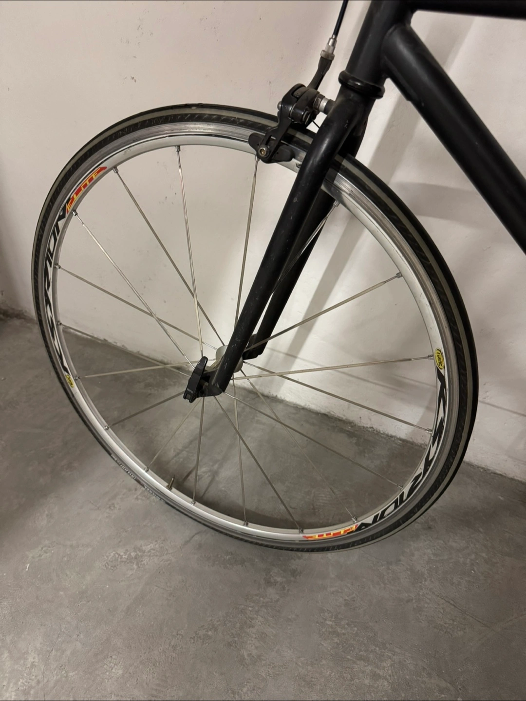 A black city commuter. Single-speed. A great bike to get around the city on. Medium/large frame. Has a mavic Ksyrium front wheel. Currently not rideable, bike being sold as is. Needs new tubes and a good tune up. Pick up only in East Vancouver.