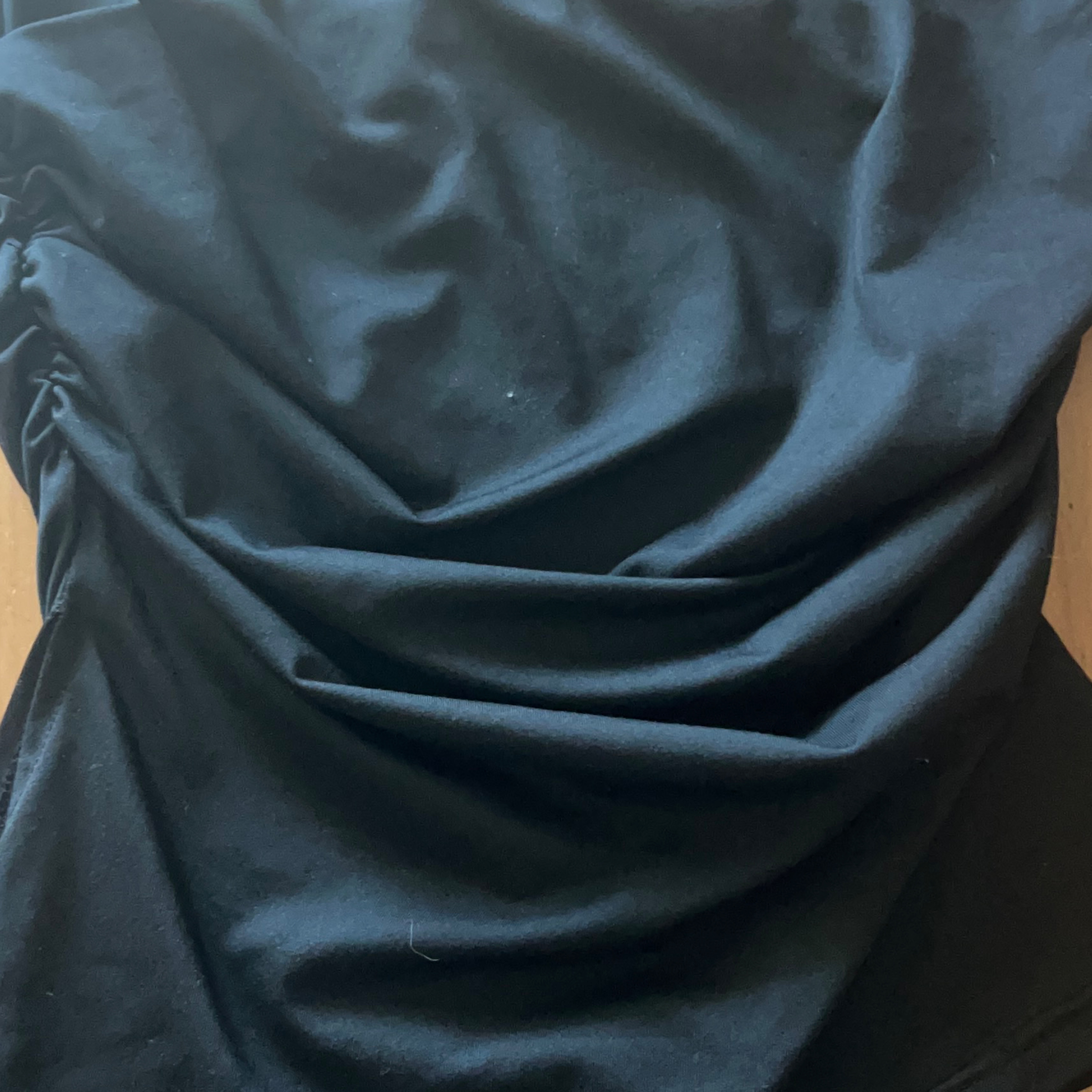 65Here's a black top with ruched detailing. It's in good condition and ready for a new home!