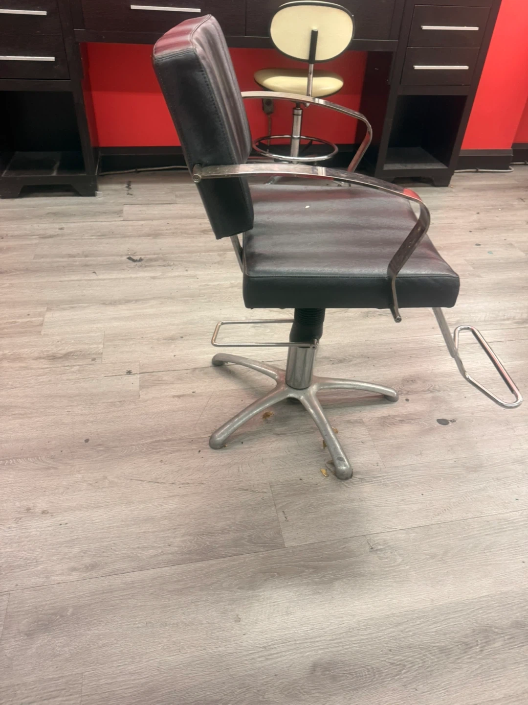 10Selling a black salon styling chair! It's in good condition and ready for a new home. Perfect for a salon or home setup