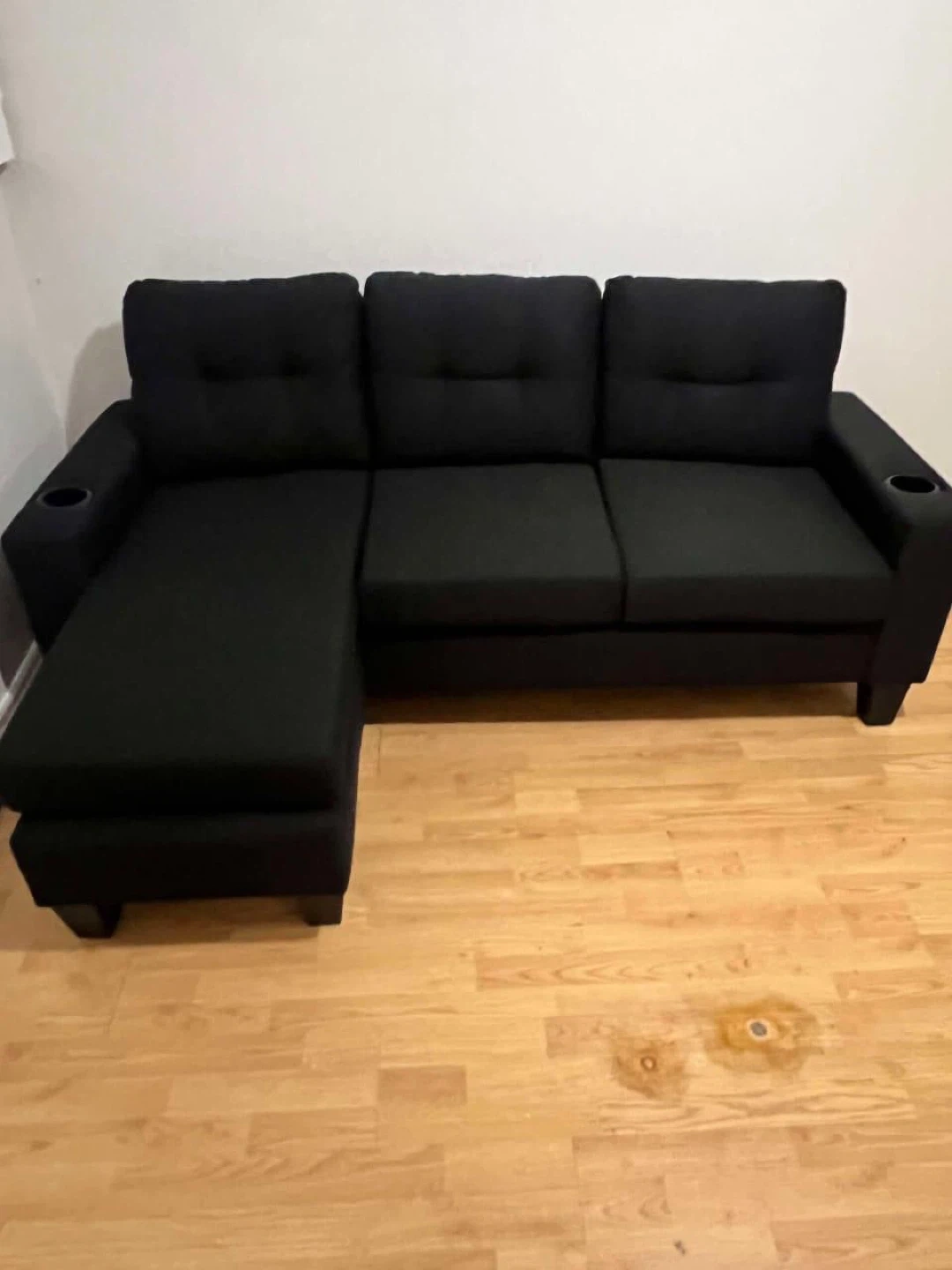 Grey Corduroy Sectional Sofa with Ottoman