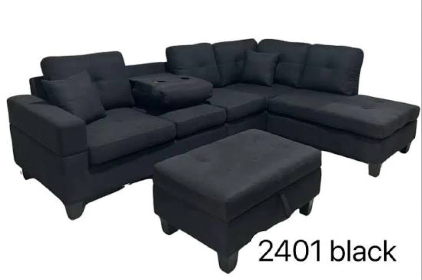 Spacious & Versatile 6-Seater Sectional Sofa – Comfort & Functionality Combined! Upgrade your living space with this stylish and functional 6-seater sectional couch, designed for ultimate comfort and flexibility. Crafted from high-quality fabric, this sofa is available in elegant Grey and classic Black, blending seamlessly with any décor. Key Features: ✔ Spacious Design: Generously sized at 34" x 78" x 107", providing ample seating for family and guests. ✔ Reversible Chaise: Customize your setup by placing the chaise on either the left or right side to fit your space. ✔ Storage Ottoman Included: Keep your living area clutter-free with a convenient storage ottoman for blankets, magazines, and more. ✔ Drop-Down Cupholder Tray: Enjoy movie nights with a built-in cupholder tray for added convenience. ✔ Soft & Durable Fabric: Made from premium-quality fabric, ensuring both comfort and longevity. ✔ Two Toss Pillows Included: Extra comfort and style with matching throw pillows. ✔ Easy Assembly: Comes in 4 separate boxes – (Left Sofa, Right Sofa, Chaise, and Ottoman) – for easier transport and setup. Perfect for family gatherings, entertaining guests, or simply relaxing, this 6-seater sectional offers the ideal combination of comfort, durability, and modern aesthetics. 📌 Available Colors: Grey | Black 📦 Packaging: 4 Boxes for easy handling Transform your living room with this modern sectional sofa – where style meets functionality! 2401 6 Seater Sectional Couch Styled For Everyday Living 2401 6 Seater Sectional Couch Styled For Everyday Living