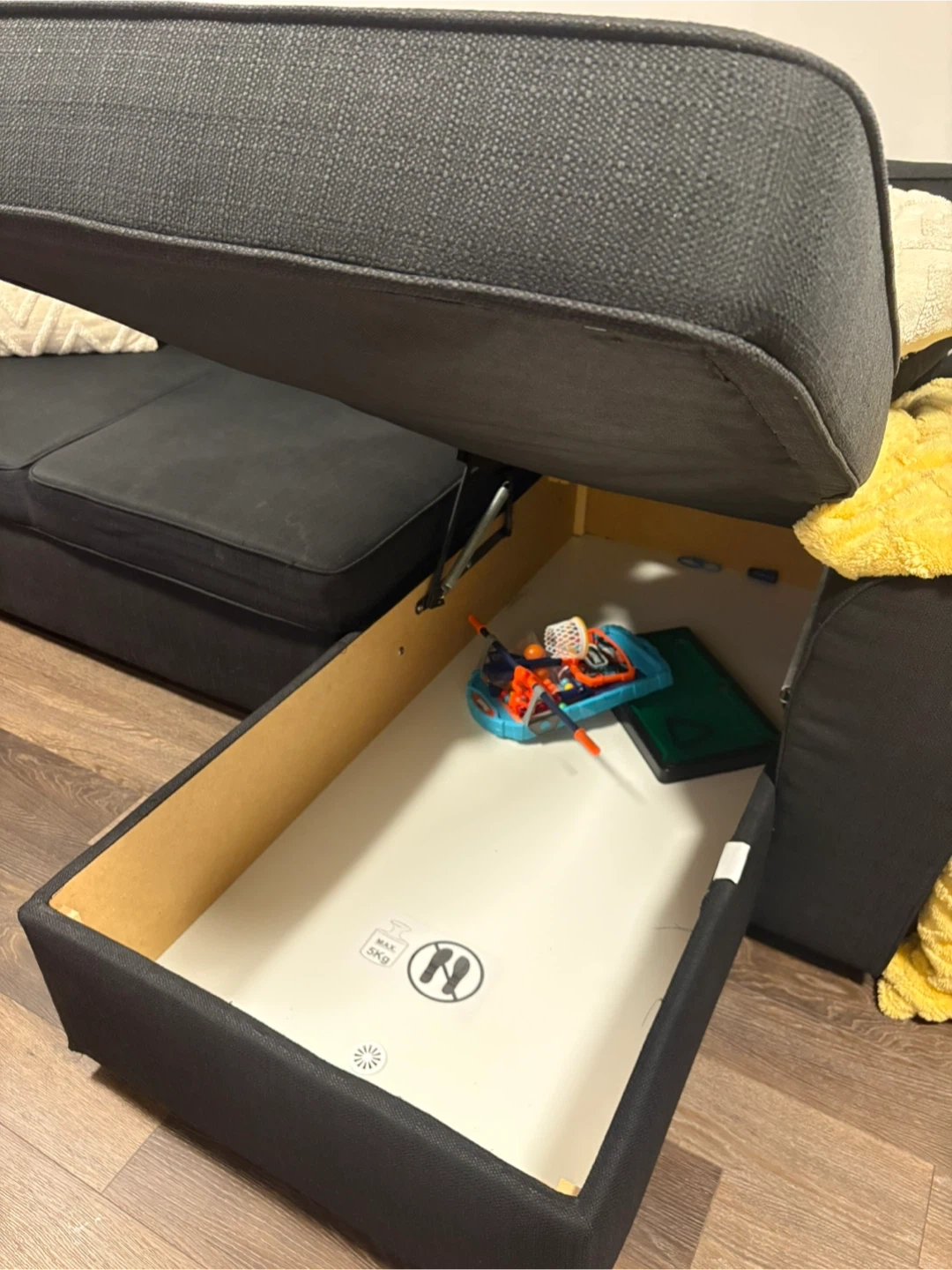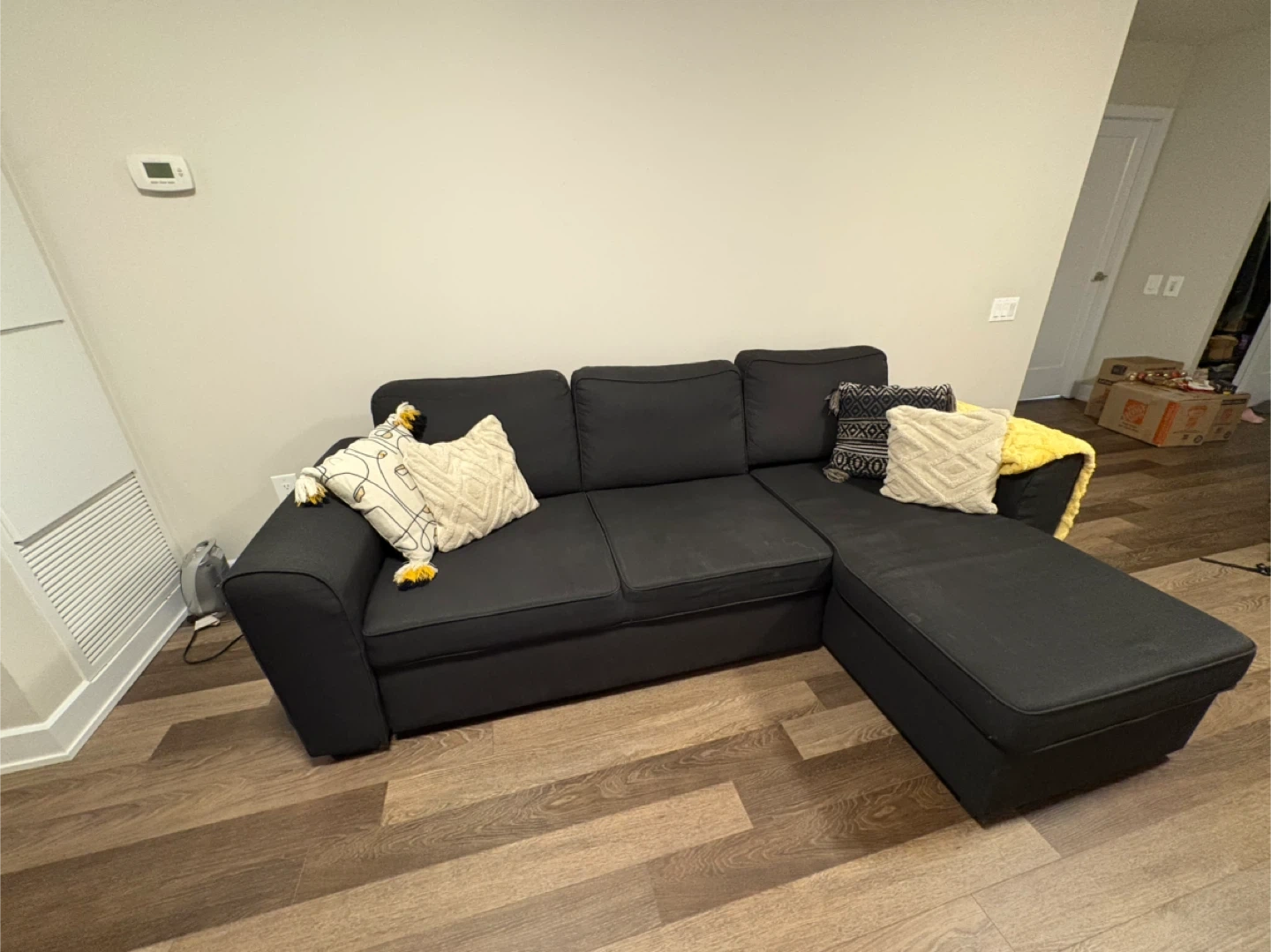 10Selling a comfortable black sectional sofa! It features a convenient storage compartment under the chaise lounge, perfect for blankets or other items. Great for a living room or family room!