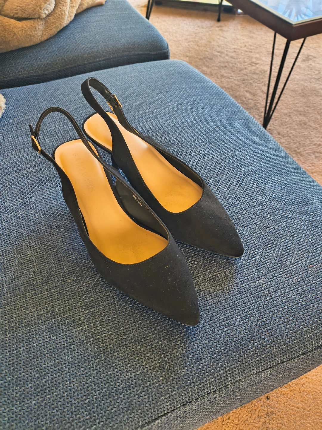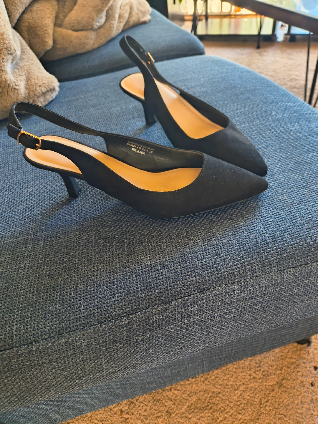 0Selling a pair of kitten slingback heels in black. They are a size 10 US. These stylish heels are perfect for dressing up any outfit!