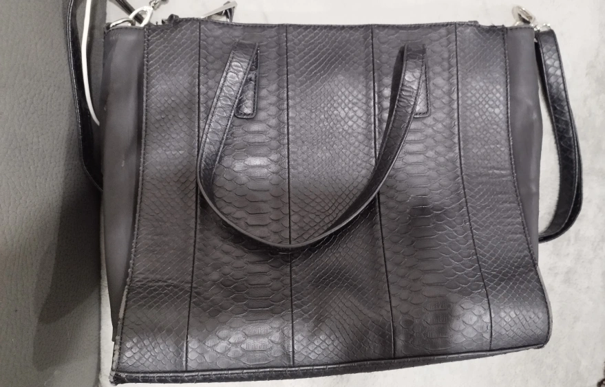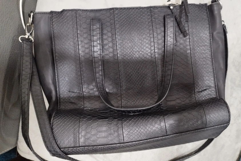10Stylish black tote bag with a snakeskin pattern! It's in great condition and ready for a new home. Perfect for carrying your essentials in style