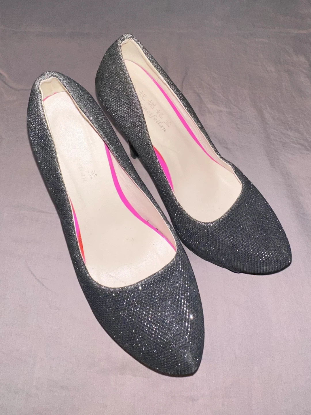 Selling a pair of black sparkly heels. They are a size 7 and used less than 3 times as you can see the bottoms in the photos. Please take a look at the pictures for details! They are really comfortable!