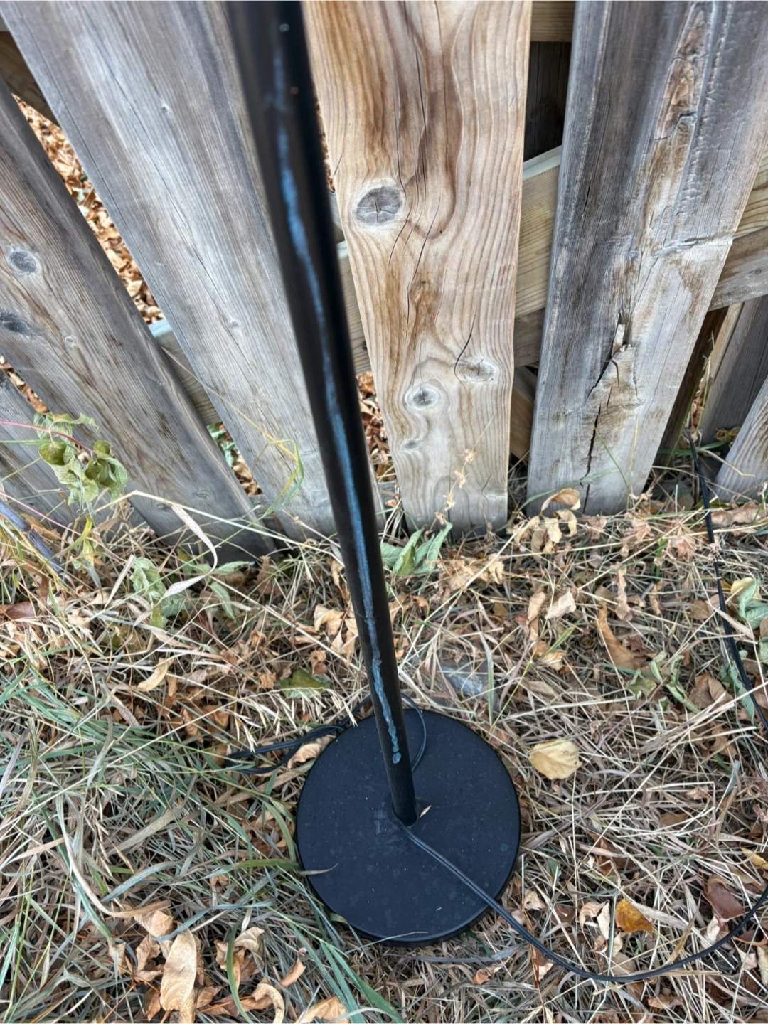 75Selling a black spotlight. It features adjustable heads, so you can direct the light where you need it. Some of them are tear but still work . Great for illuminating your yard or garden! Pick up at Morley trail NW