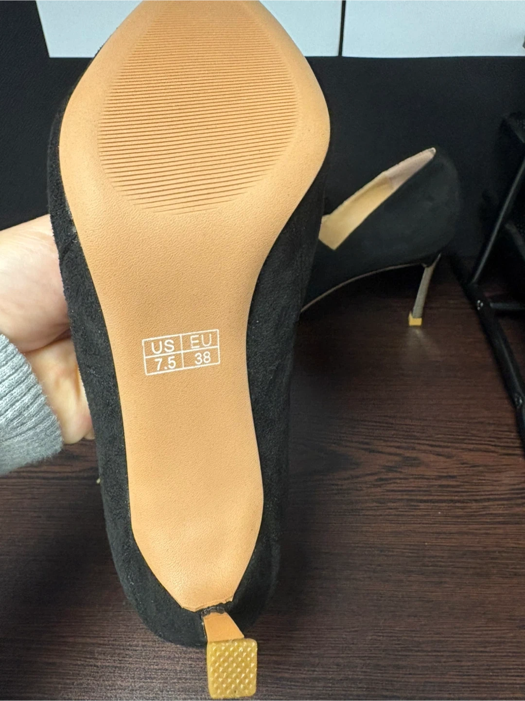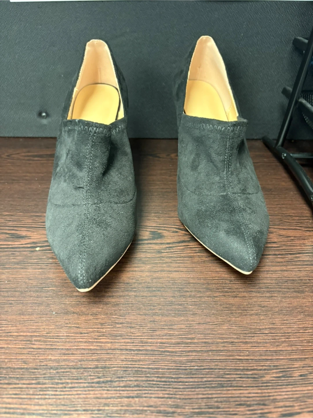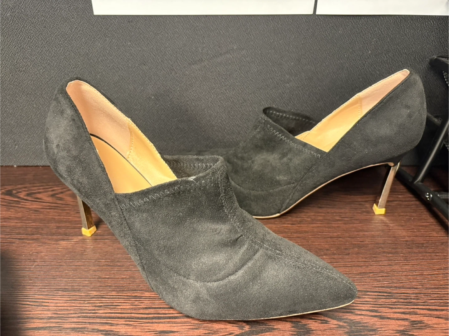 10Beautiful black suede women’s high heels perfect for the upcoming Christmas season. I paid $94 for them and they are half a size too tight. I am asking 85 but will take reasonable offers.