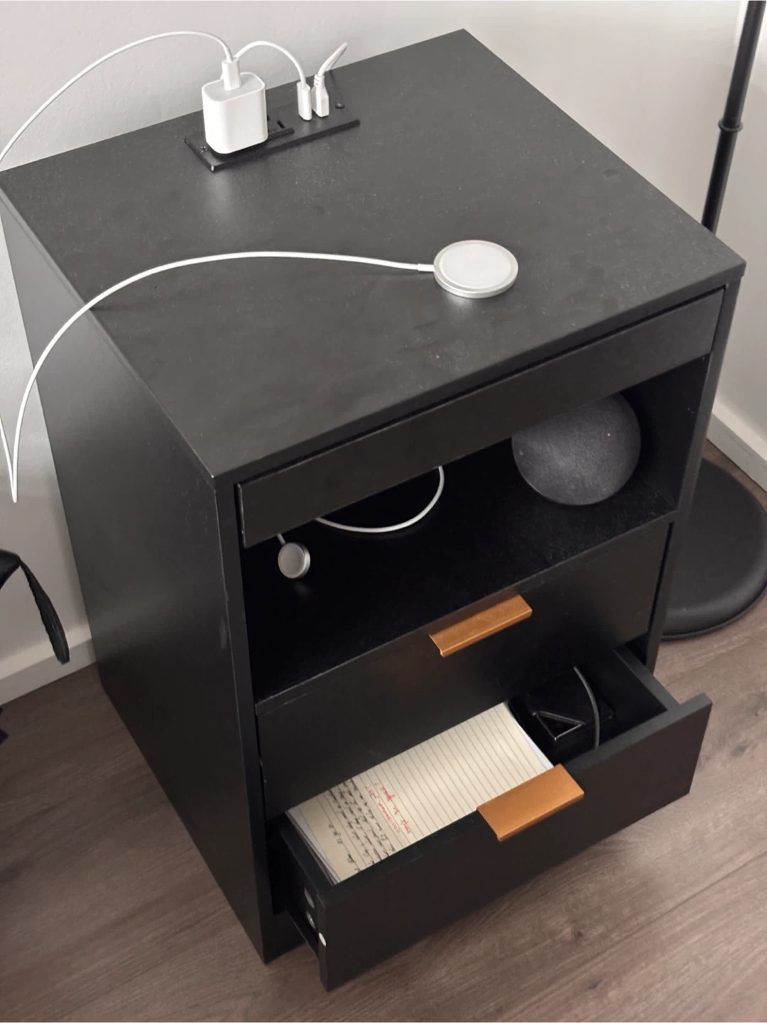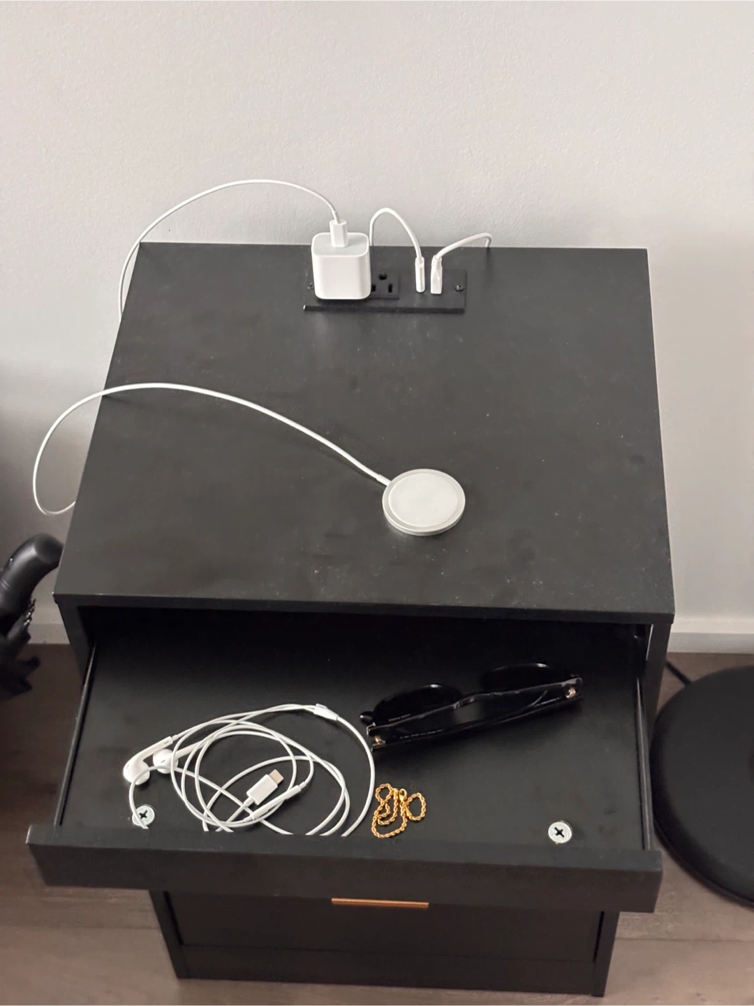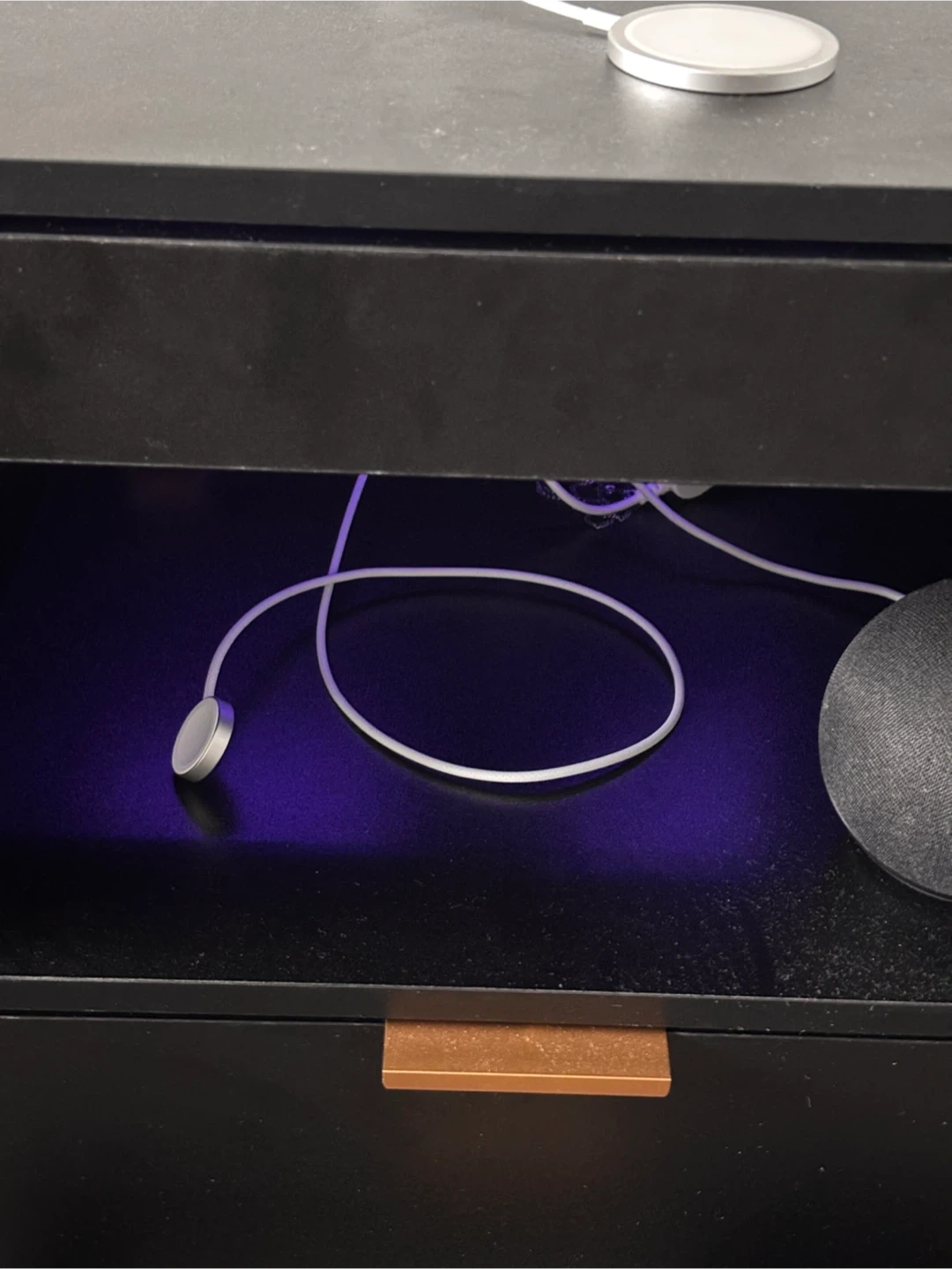 10But that drawer with four storage units one on top one empty in the middle and two jars coming with LED and his control you can change the colours and also a plug for your chargers on top with a USB-C and USB a type port Already assembled completely new had it for two months