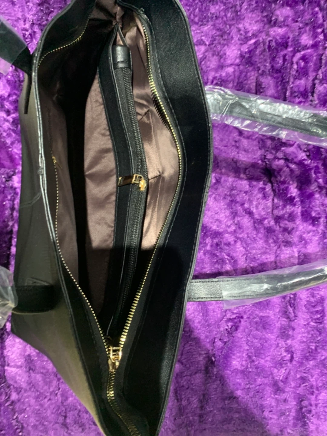 Selling a black tote bag. It's in great condition and has a zipper. Perfect for everyday use