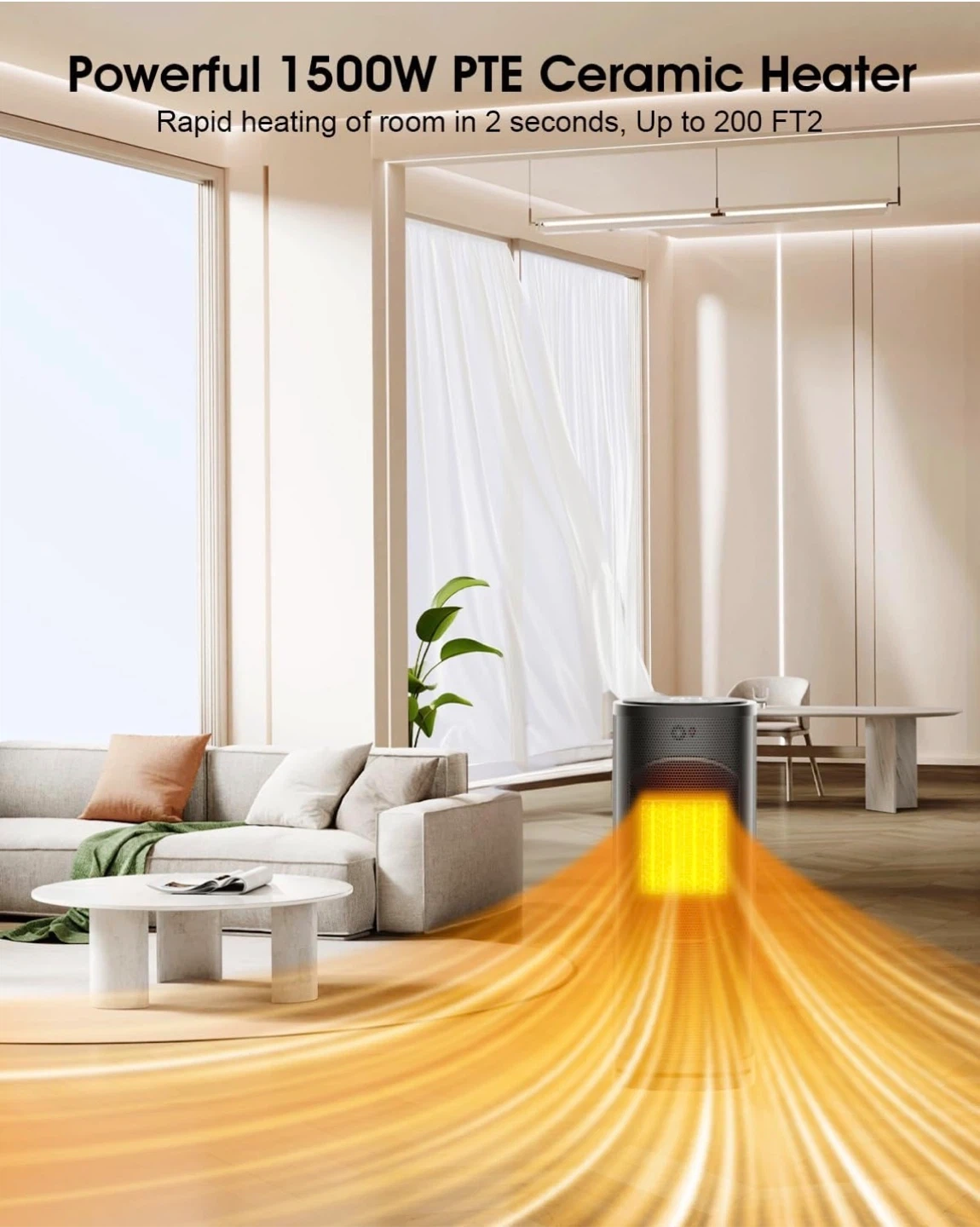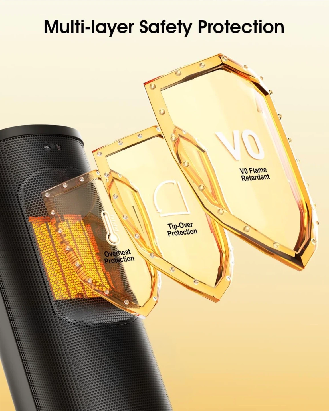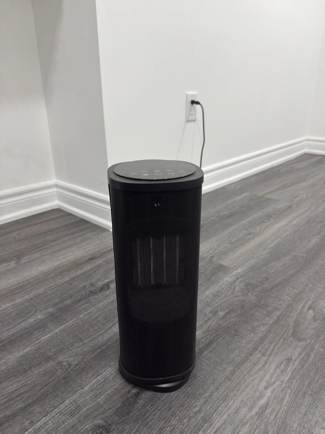 10This is a black tower space heater that's super quiet! It uses oblique airflow technology and is 12% quieter than conventional heaters. It also has multi-layer safety protection, including overheat and tip-over protection. The touch control panel lets you adjust wind speed, heating mode, oscillation, set a 12-hour timer, and use ECO mode. It also comes with a remote