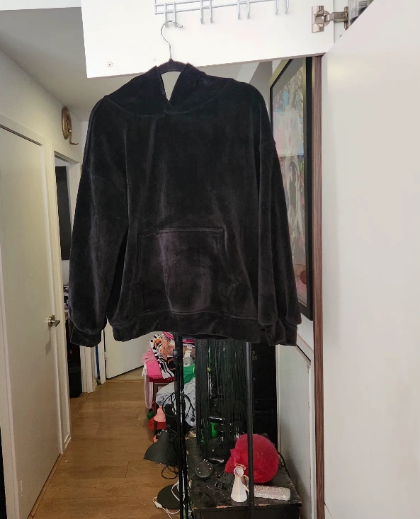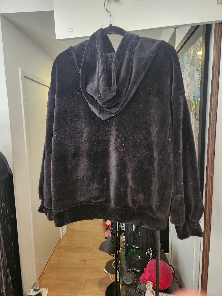 Black velvet velour hoodie with a pouch pocket. Fits a medium to large. Very warm and buttery soft. * Cash Only * * No E-transfers * * Pickup Only * * Serious Offers Only *