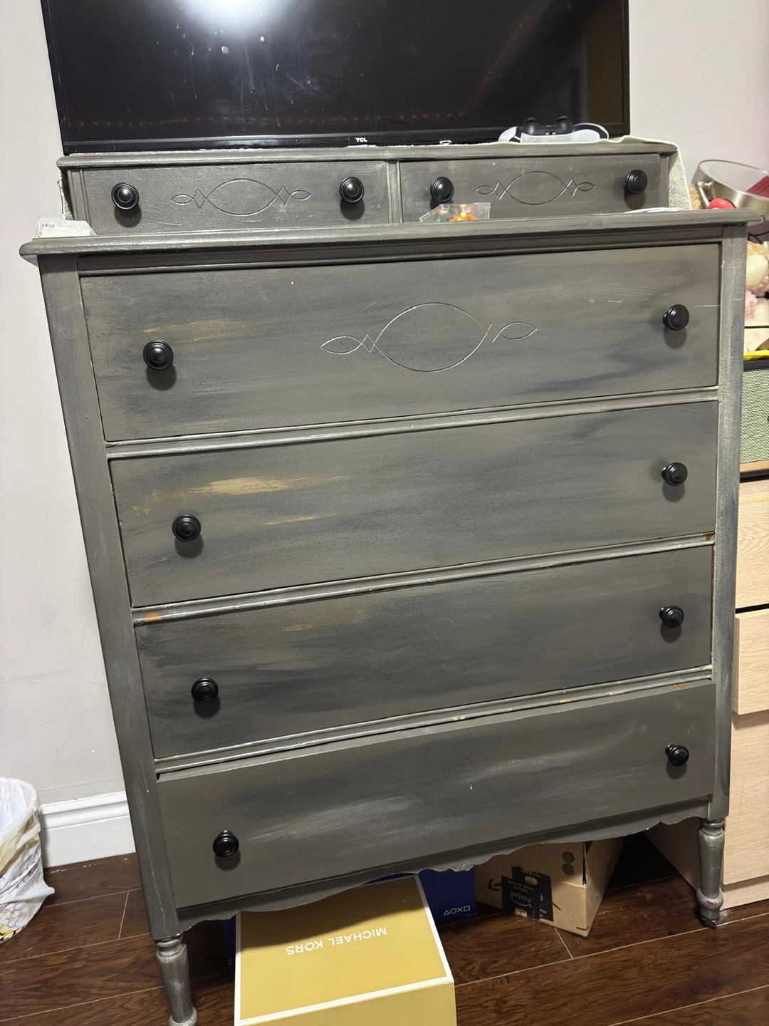 20Black wardrobe, 3 dressers all different sizes, TV.
