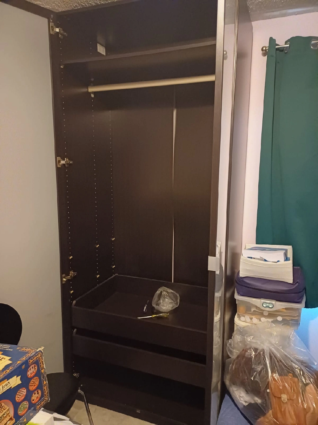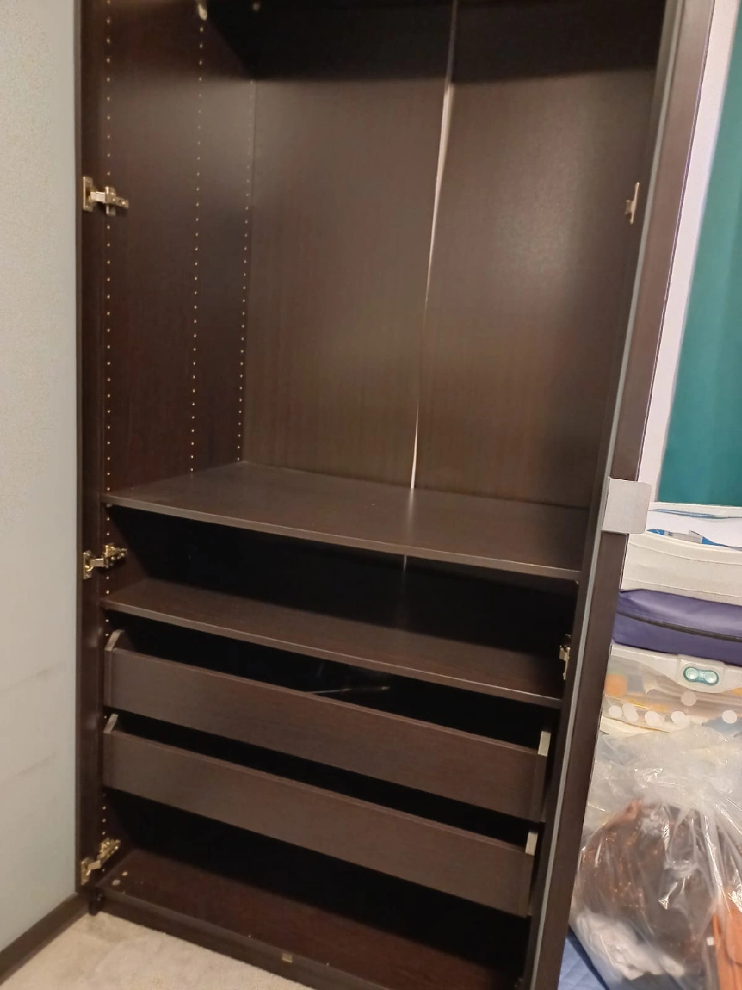 🏠Pickup only -- near Dufferin and Eglinton It's now completely disassembled so it's much easier to pickup! Ikea Pax wardrobe with two doors that have frosted glass, bar to hang clothing, drawers. 39 1/4 inch width, 24 inches deep, 92 1/2 inch height
