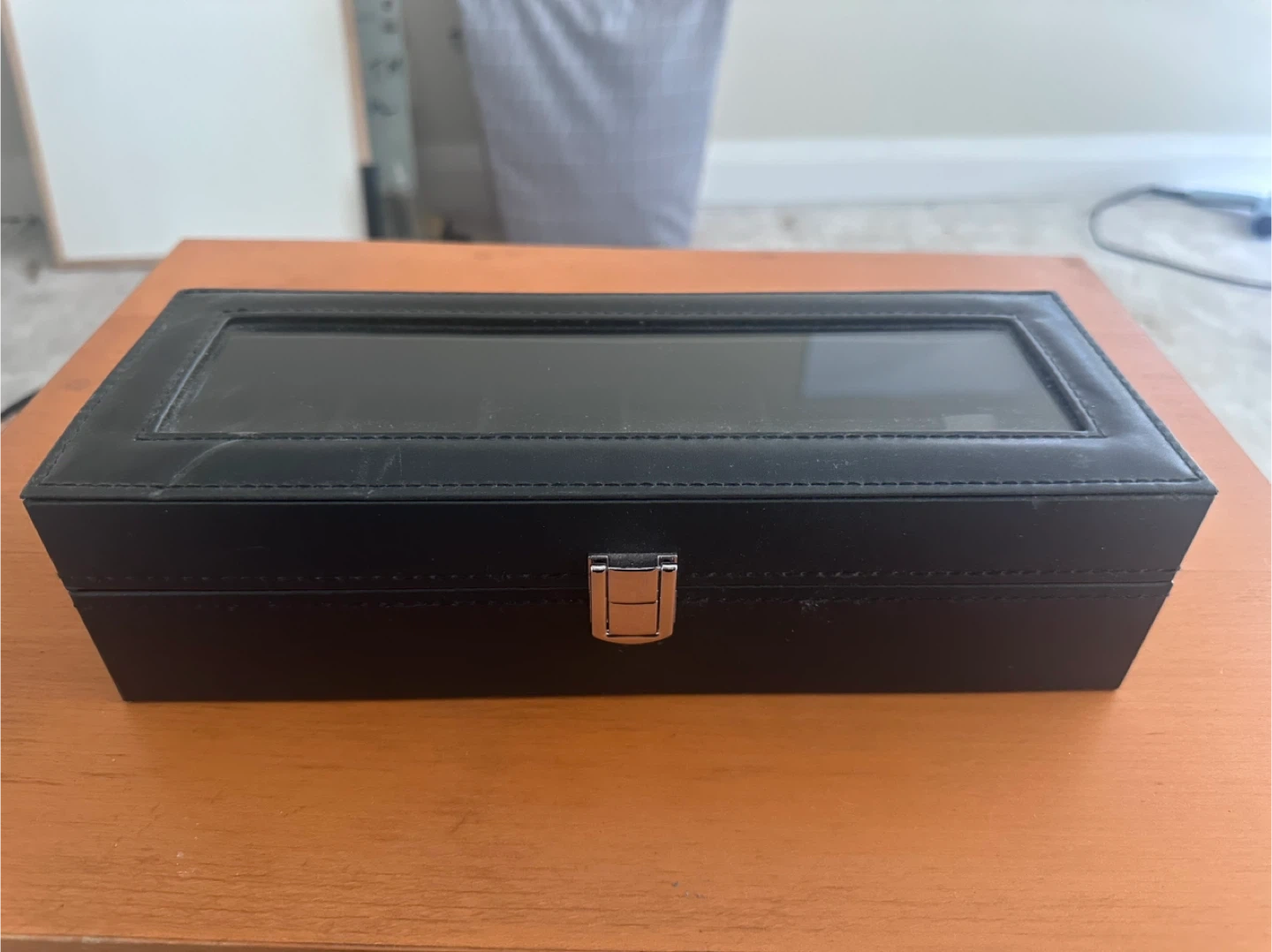 93Selling a black watch display case. It's in great condition and ready to house your favourite timepieces! It has a clear window on top so you can easily see your collection. Perfect for organizing and displaying your watches. Space for 6 watches. Asking $10 Pick up Islington & Queensway Cash only