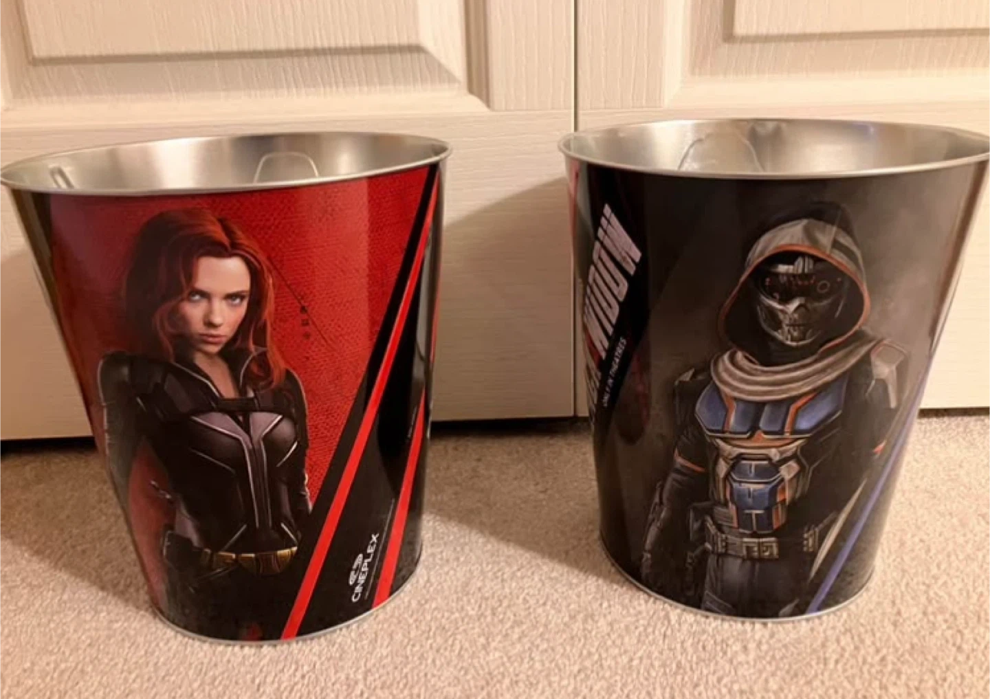 10Black Widow Cineplex Popcorn Buckets- new condition never even used for popcorn. Taskmaster and Black Widow. Price is for both, message for separate purchases