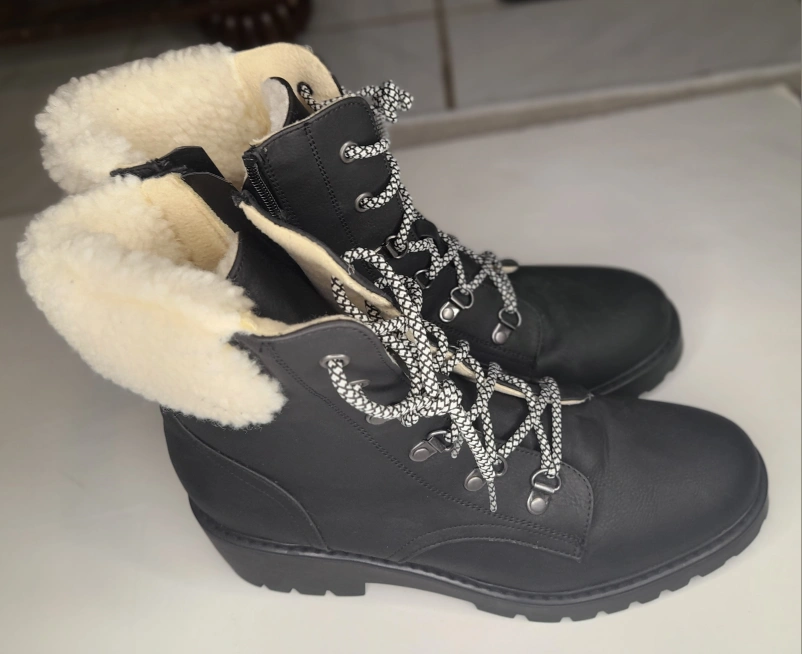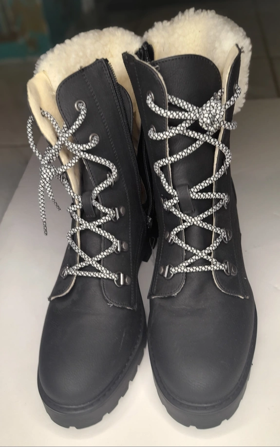 These black winter boots are ready to keep your feet warm and stylish! They feature a cozy faux fur lining and a lace-up design. Perfect for the Canadian winter!