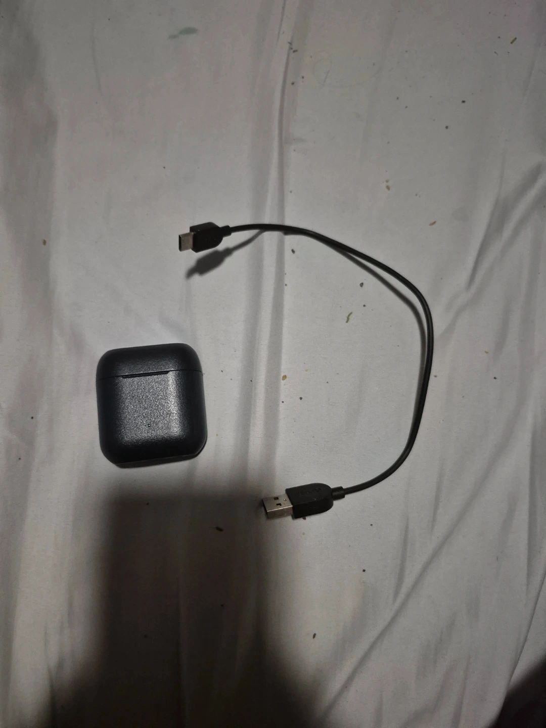Selling a pair of black wireless earbuds, complete with their charging case! They come with a charger as well. Great for listening to music on the go
