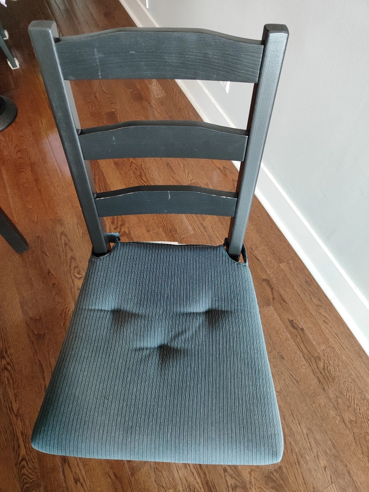10Selling a sturdy black wooden dining chair. It's in good condition and would be a great addition to any kitchen or dining room. It has a padded seat for extra comfort