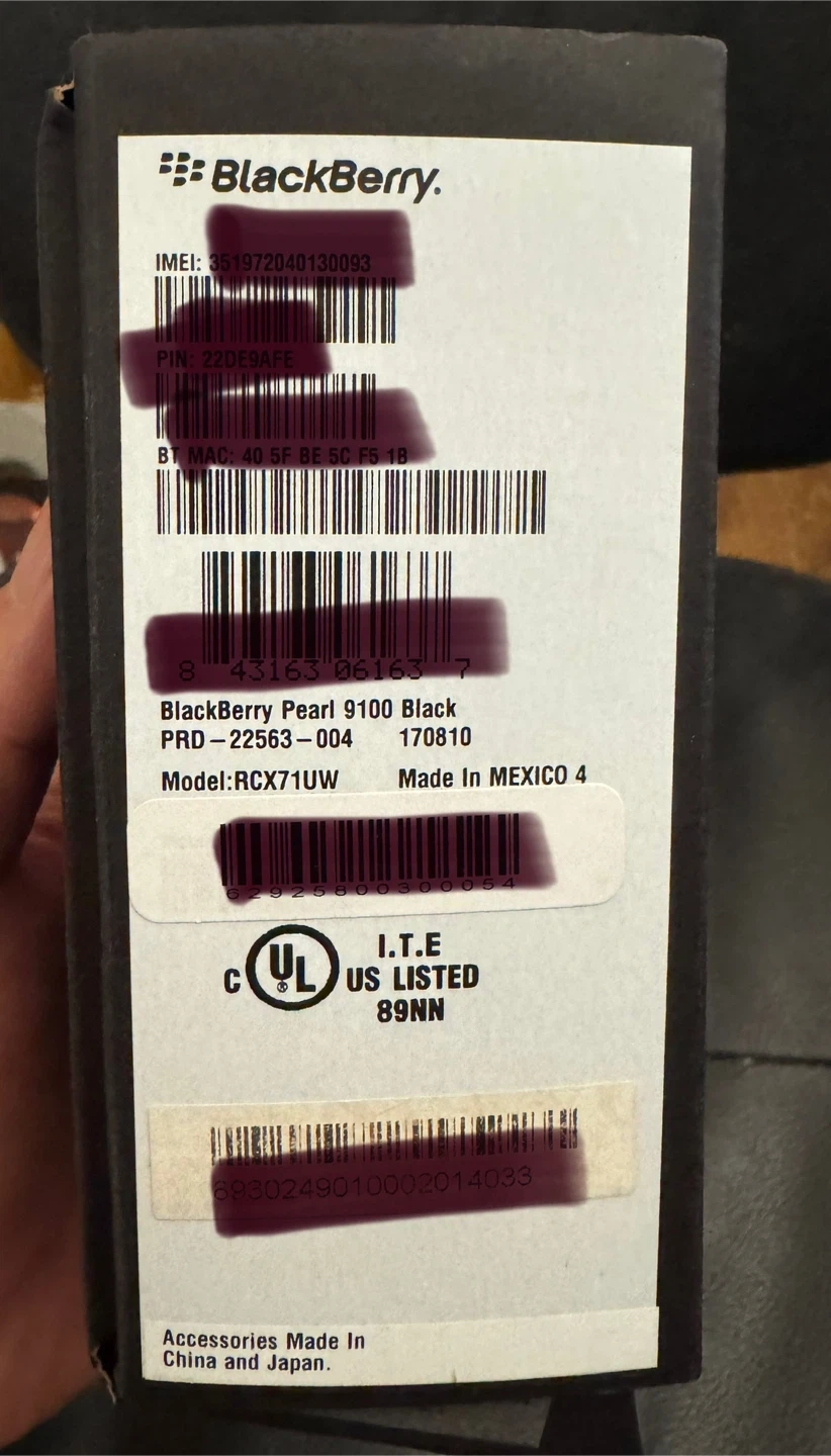 65Selling a Blackberry Pearl 9100 in black. It comes with its original box and included components like the charger and instructions. I have 35 units available.