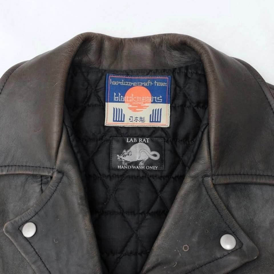 Rare Archival Blackmeans Sid Vicious Aged Leather Jacket - Size 2. Beautifully distressed teacore black leather faded to slightly brown on the sleeves, with tan zippers. Sold exclusively at Berberjin back in the day, made in Japan. Measurements Shoulder: 16.5" Chest: 18" Length: 23" Sleeve: 24.5" Pickup in Vancouver Beams Undercover Comme des Garcons Visvim Kapital Needles Auralee orSlow 45rpm A.PRESSE Junya Watanabe CDG Sacai and Wander Snow Peak Human Made Nigo Bape Stussy Supreme Kith Noah Carhartt Brain Dead Palace Aime Leon Dore Y-3 Yohji Yamamoto Issey Miyake Suicoke Engineered Garments Nanamica Cav Empt Wtaps Neighborhood Norse Projects Our Legacy Stone Island JJJound Wings+Horns Reigning Champ Peak Performance Patagonia The North Face Arcteryx Salomon