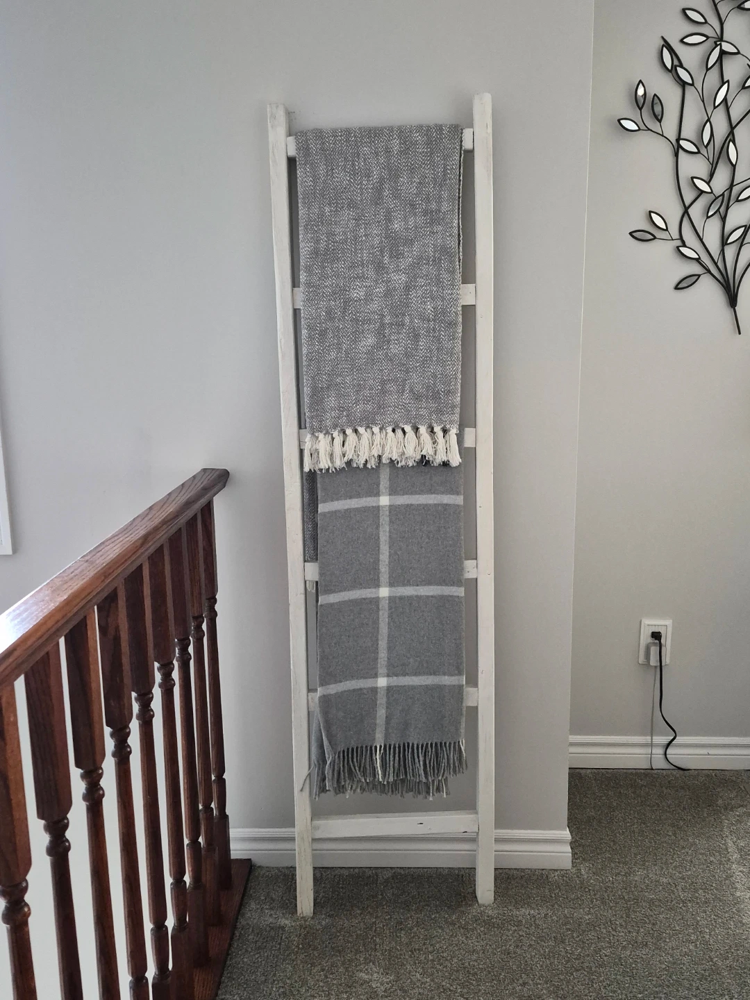 60Shabby- chic ladder blanket. White in colour, 6ft tall Blankets included if you would like them. (From Home Sense) $50 or best offer