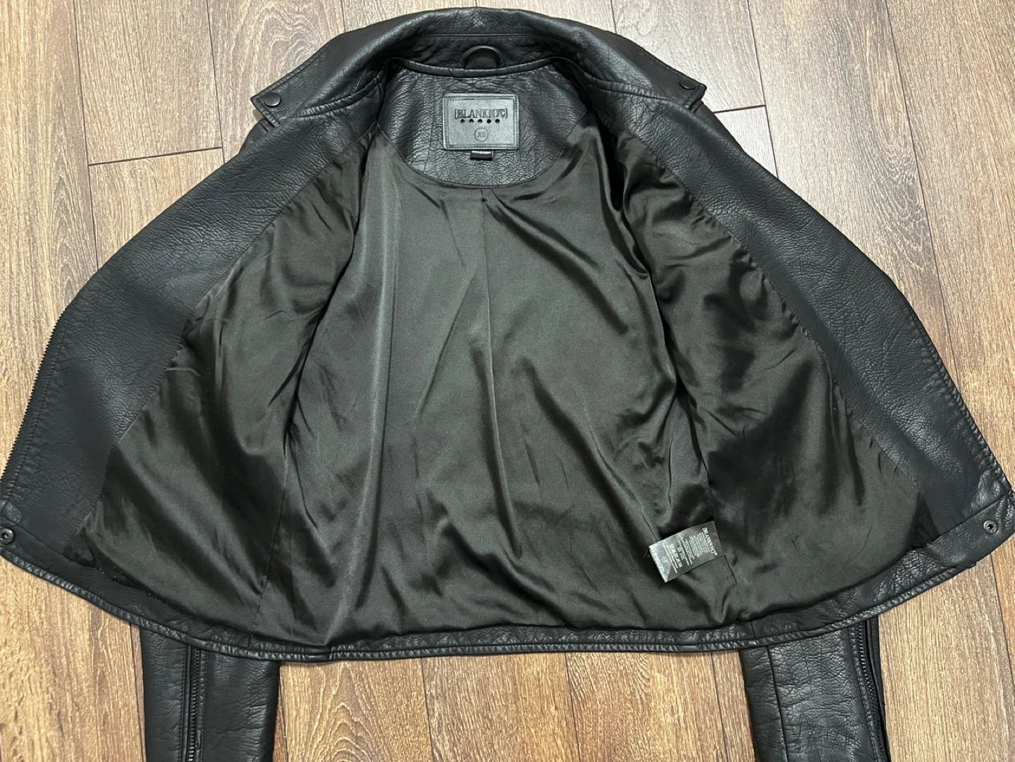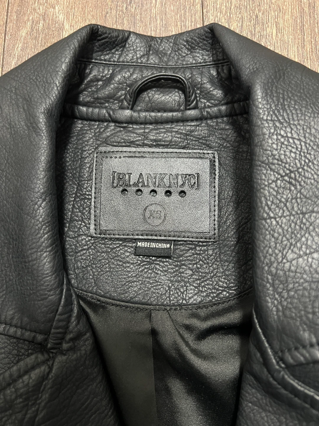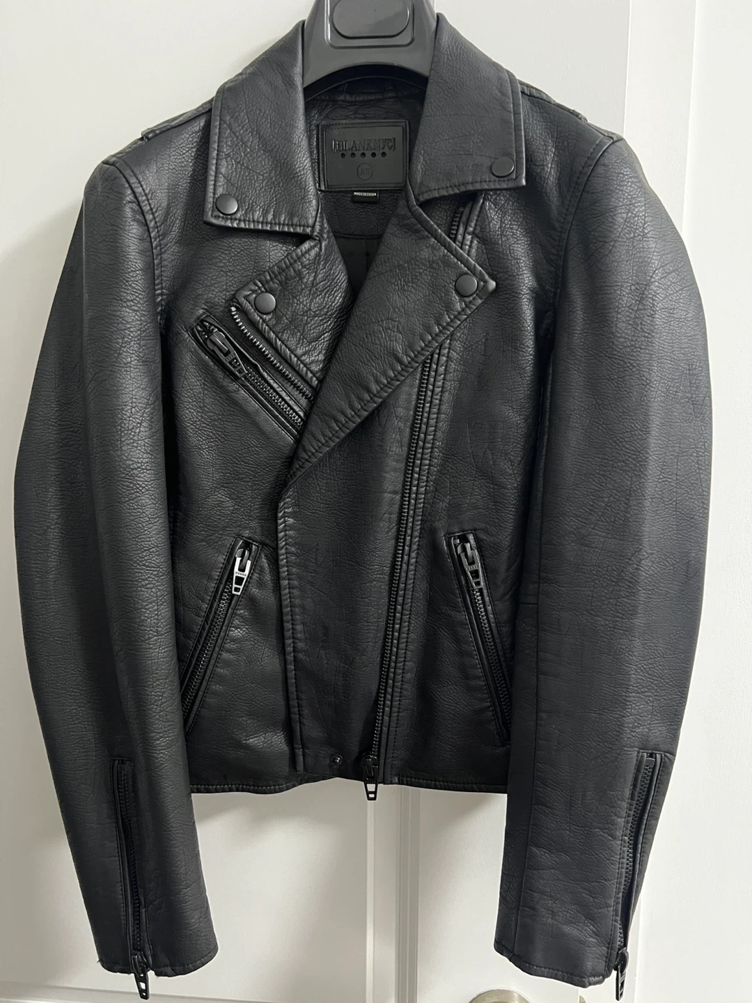 10Selling a [BLANKNYC] faux leather moto jacket in size XS. It's in great condition and ready for a new home. The jacket is black and made of vegan leather. Perfect for adding a bit of edge to any outfit!