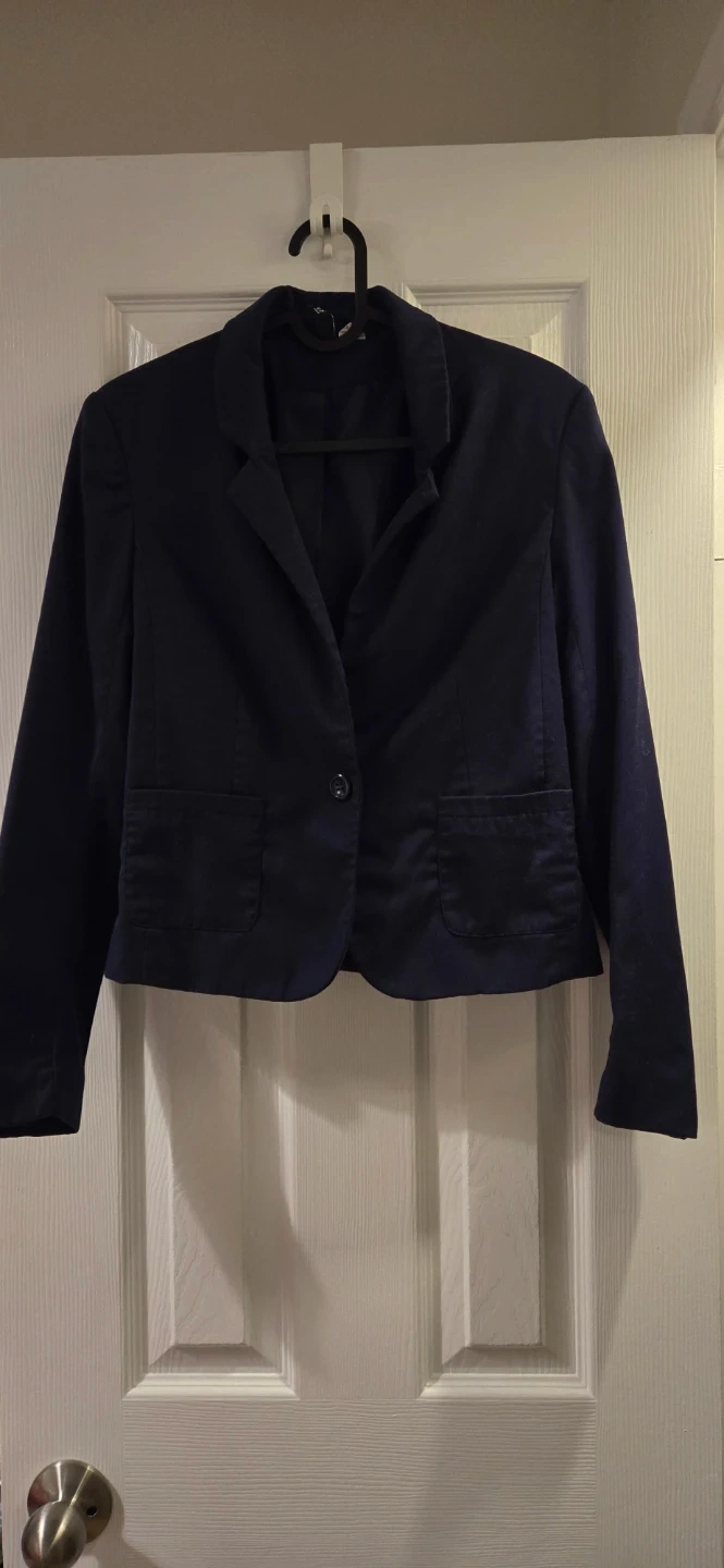 675A navy blue cropped blazer. It's in good condition. Size 6, fits like a SM