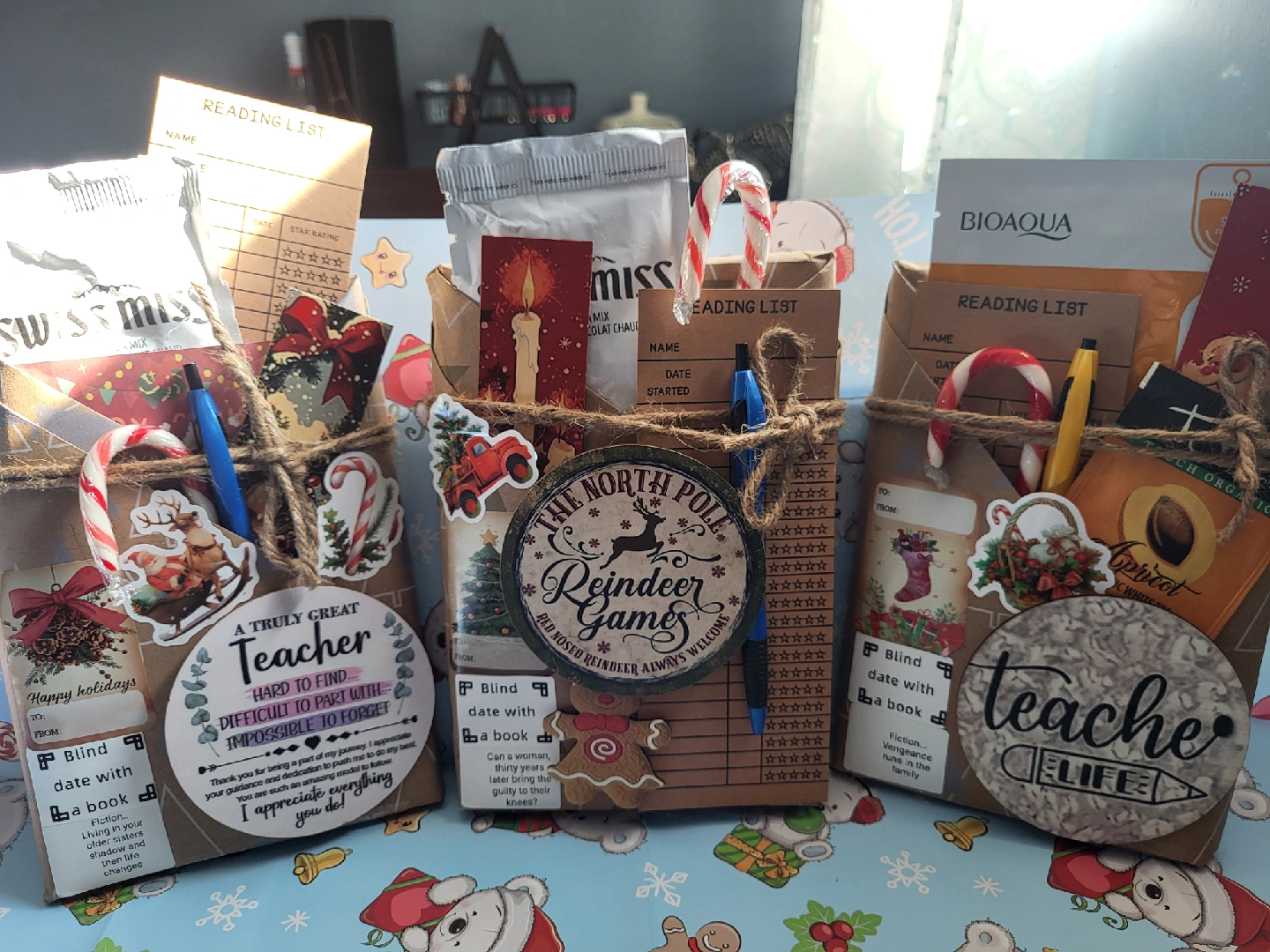 Blind date with a book All new books (no used ones here) Xmas ones now for sale Great gifts for any reader, teachers, family, work colleagues, employees. Come with lots of goodies may include Hot chocolate, face masks, coasters, candy canes, book marks, reading cards. Lots more available than ones in photos