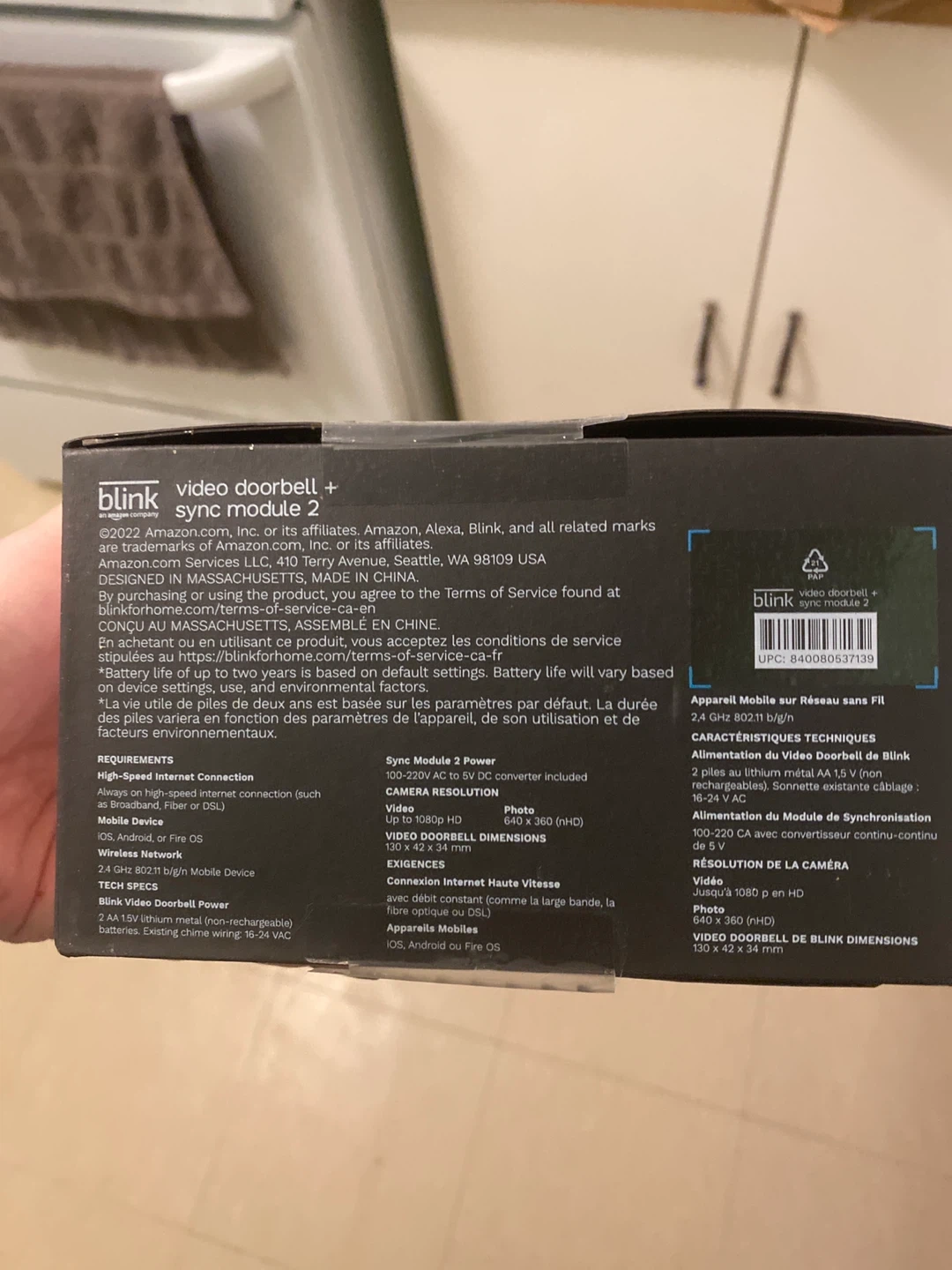 Blink Video Doorbell + Sync Module 2 - New in Box
